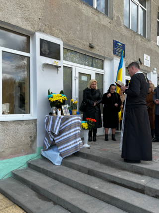 Участь в урочистому відкритті пам’ятного знаку взяли рідні загиблого, представники міської влади, духовенство, колектив школи та небайдужі мешканці міста.