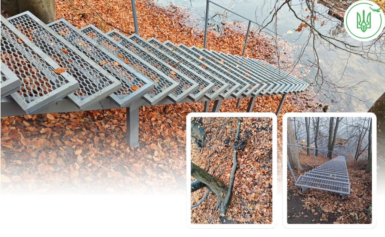 У тернопільському парку виявили самовільно встановлені металеві сходи, які ведуть до ставу