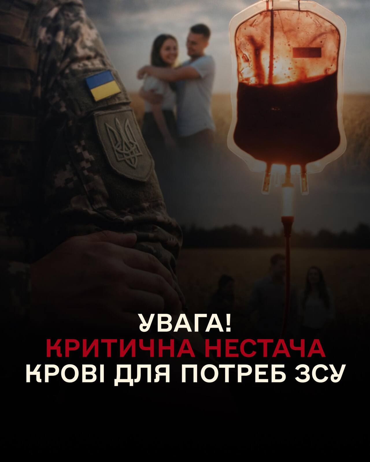 За інформацією медиків, запаси крові наразі вкрай обмежені, тому жителів закликають терміново долучитися до донорства.