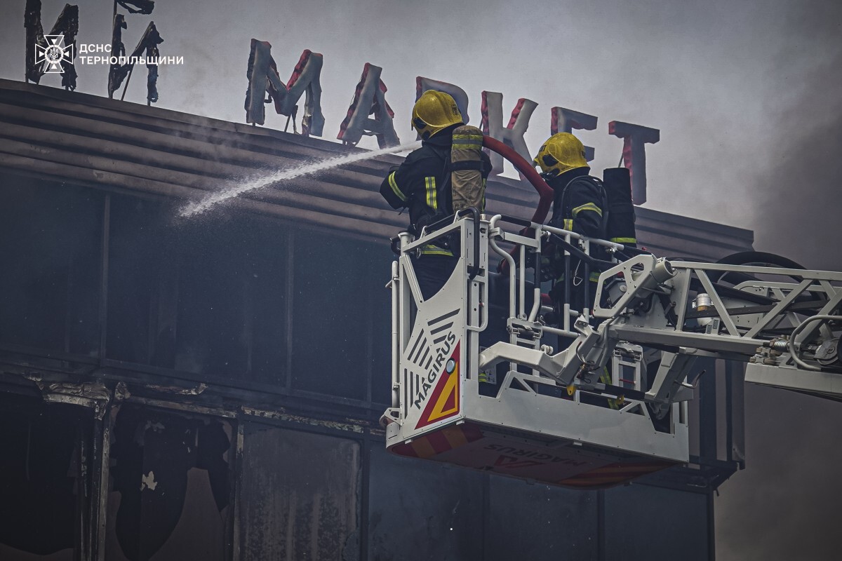 Як з’ясувалося, горів супермаркет та сусідські торгівельно-складські приміщення. Площа займання - близько 1500 м². Люди в пожежі не постраждали.