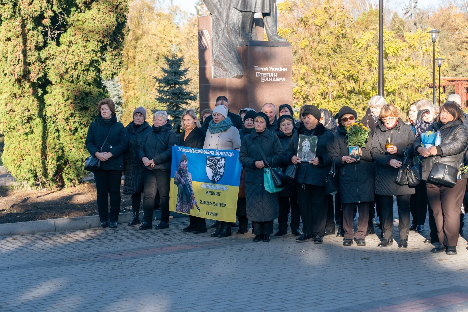 Рідні полеглих на війні принесли з собою їхні портрети, квіти, лампадки. Спогадами про свого сина Тараса Галата, який загинув у 2023 році, ділиться його мама Лариса.