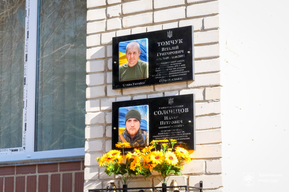На фасаді Тернопільської загальноосвітньої школи І–ІІІ ступенів №26 імені Дмитра Заплітного відкрили меморіальні таблиці на честь загиблих захисників України Назара Солонцова та Віталія Томчука — випускників цього закладу. Про це повідомила Тернопілська міська рада.