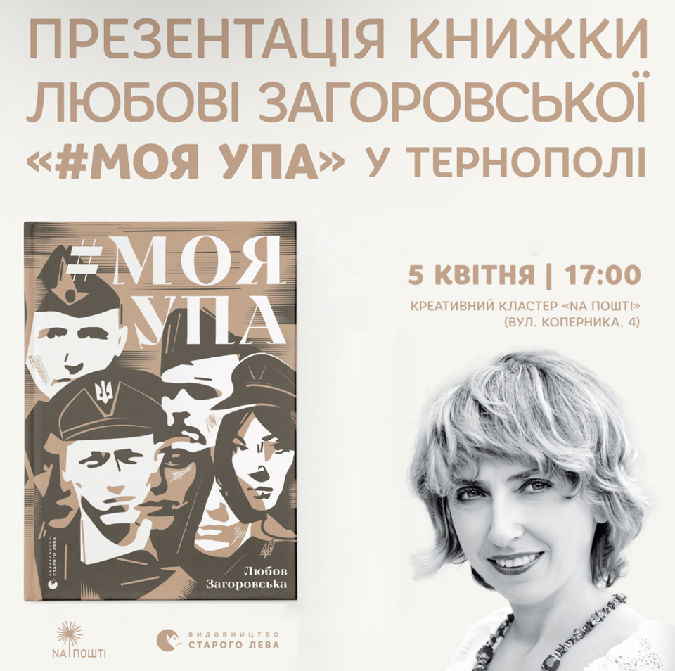 Тернополян та гостей міста запрошують на презентацію книжки-свідчення Любові Загоровської «#МояУПА» 5 квітня о 17:00 в креативному кластері Na пошті.