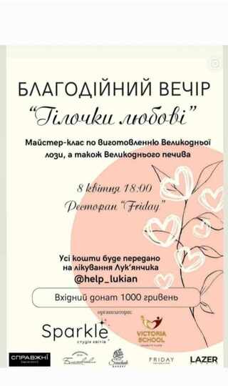Захід відбудеться 8 квітня о 18:00 в приміщенні ресторану «Friday» (вулиця Івана Франка, 23). Вхідний донат - 1000 грн.