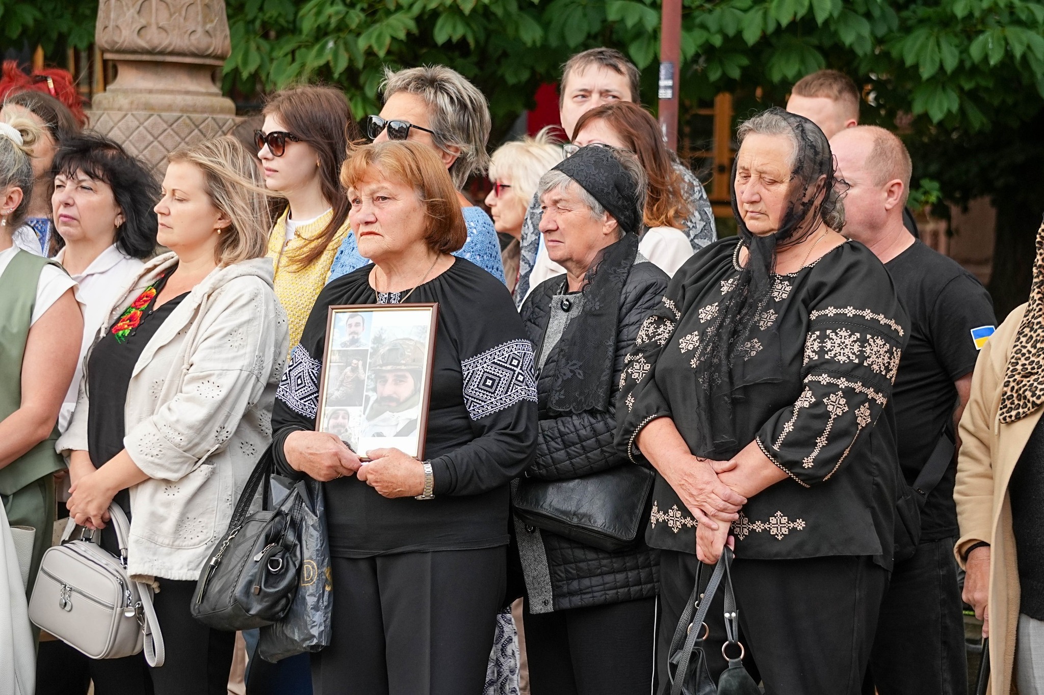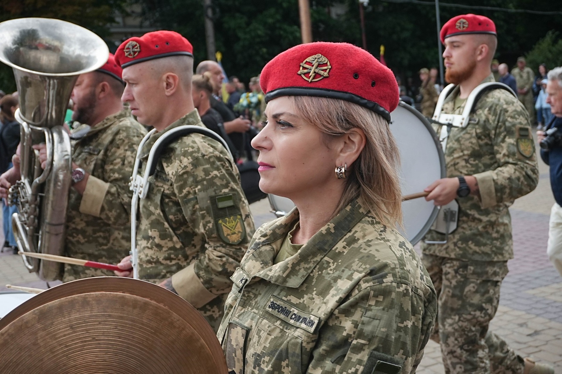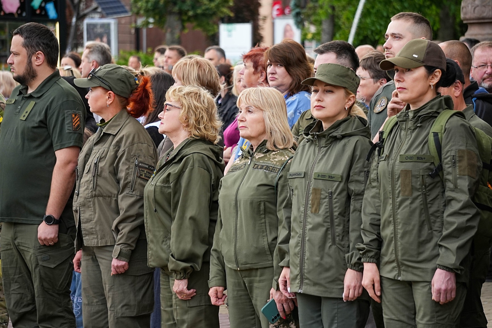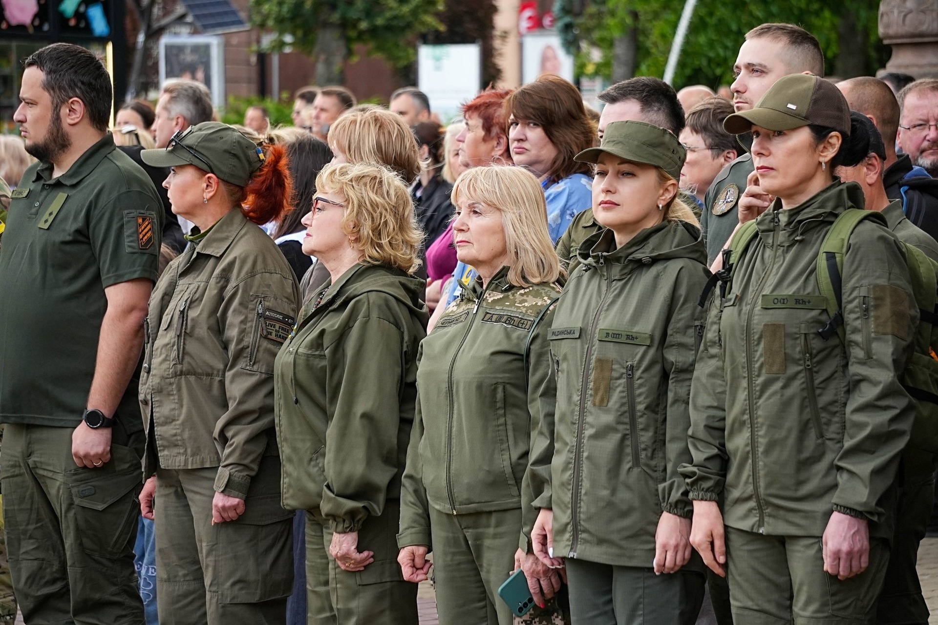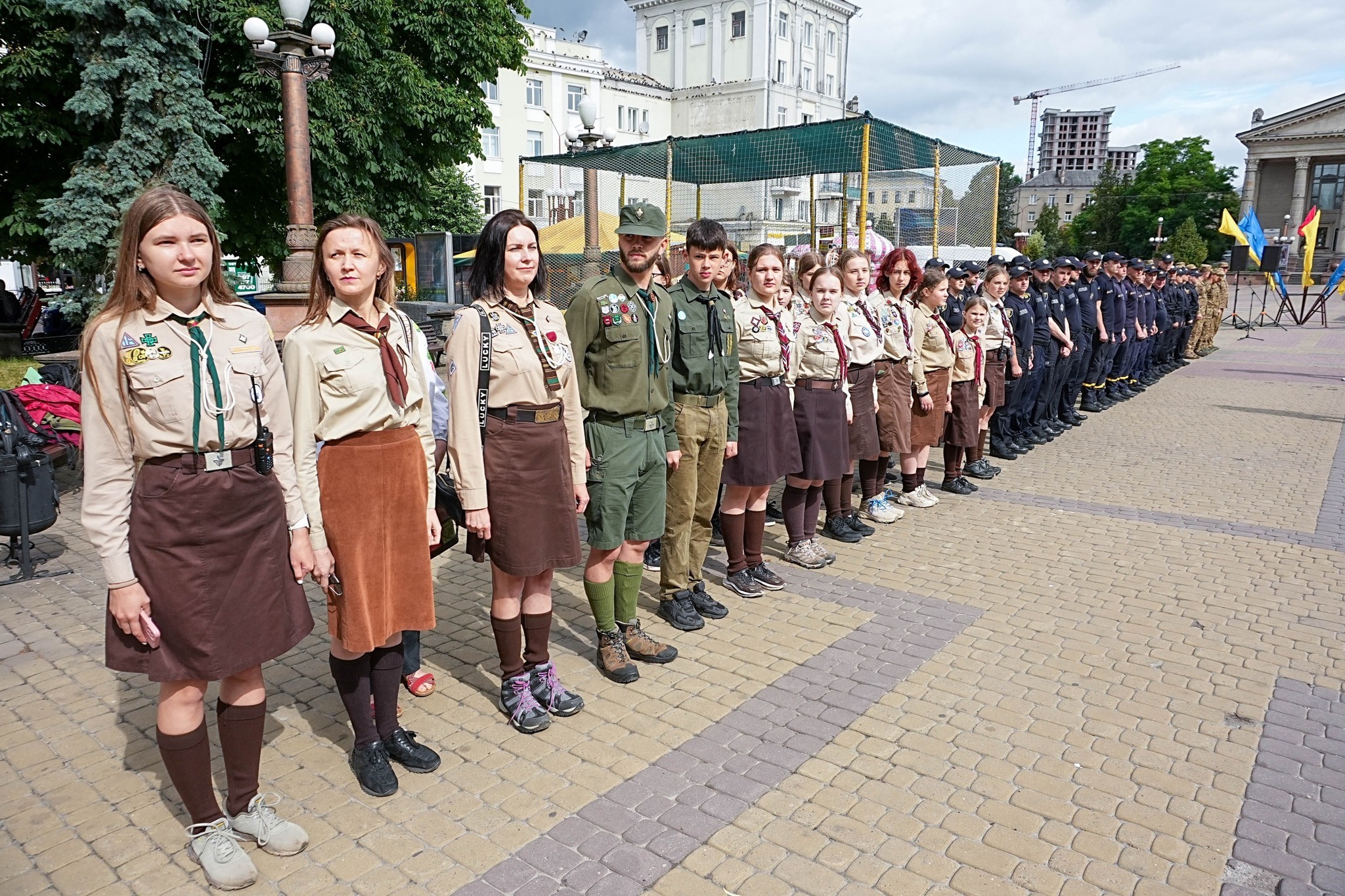 На Театральному майдані зібралися представники влади, громадськості, силових структур, військові, духовенство, родини загиблих Героїв, волонтери та молодь.