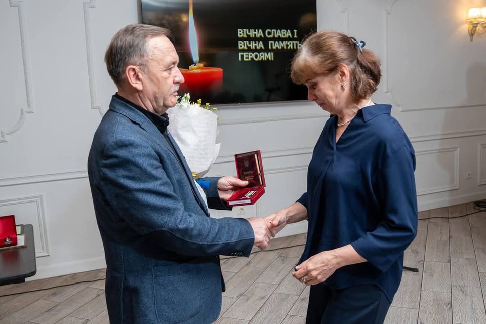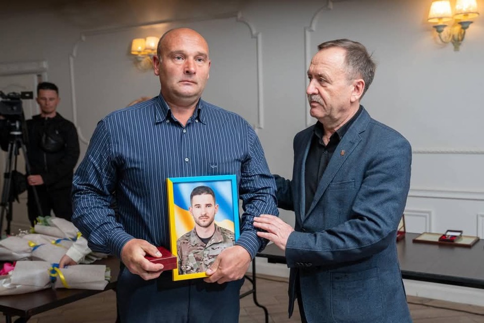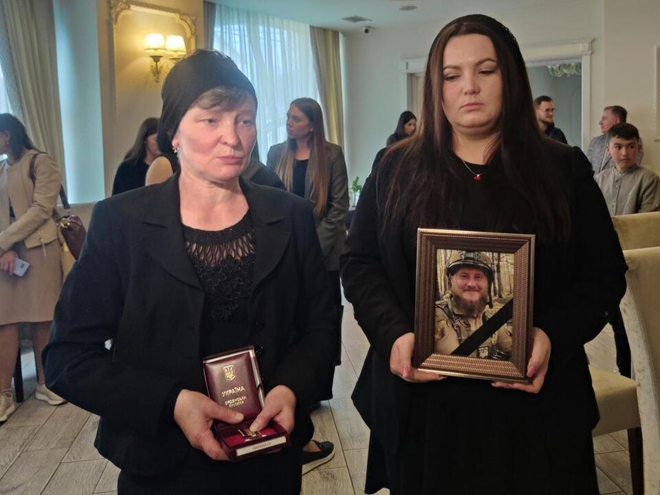 Посмертну нагороду воїна Антона Білостоцького прийшли отримати його рідний брат, дружина та матір.