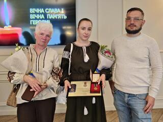 Наречена загиблого Героя Ігоря Гнатюка Сніжана Карпець прийшла отримати його нагороду разом з мамою воїна Наталею Гнатюк.