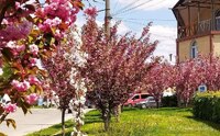 Алея сакур розцвіла навпроти «Епіцентру» на вулиці Поліській в Тернополі.