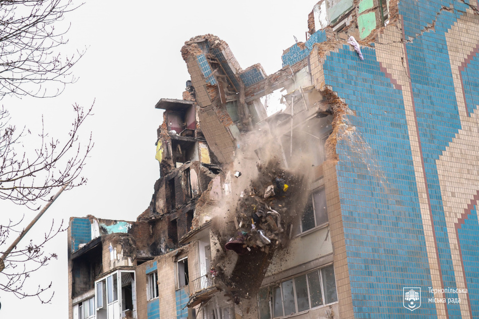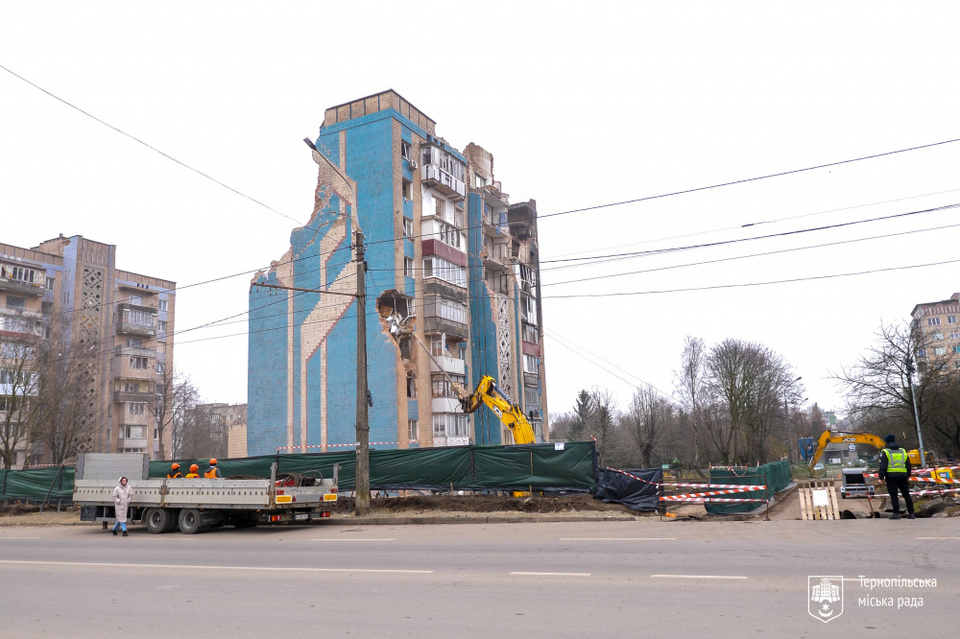 У Тернополі розпочали демонтаж багатоквартирного будинку на вул. Василя Стуса, у який 19 листопада влучила російська ракета. Про це повідомляють на сайті міської ради.