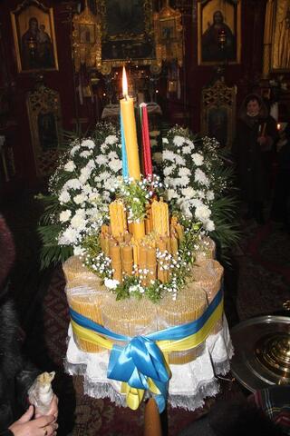 Зверху її прикрасили зіллям та кольоровими запаленими свічками, від яких віряни могли запалити й свої свічі, принесені на освячення до церкви.