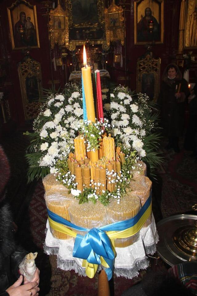 На Стрітення справжньою окрасою храму Різдва Христового (зелена церква) міста Тернополя стала композиція із кількох сотень воскових свічок, яка нагадувала велетенський «коровай».