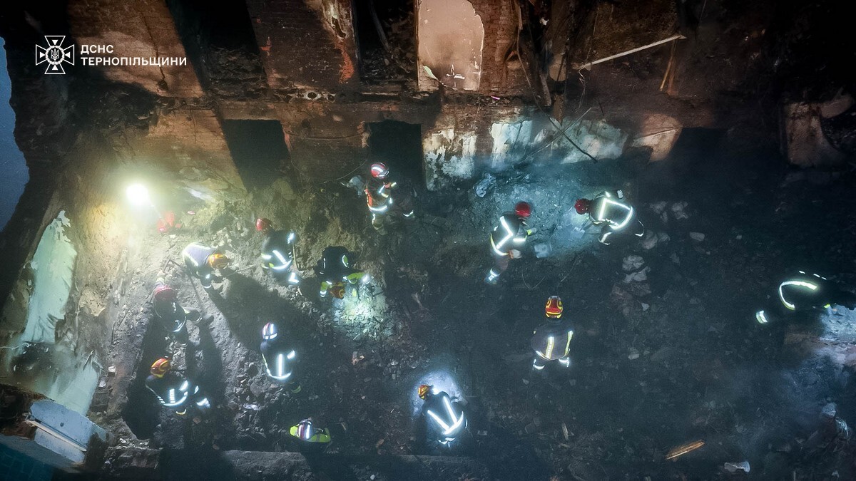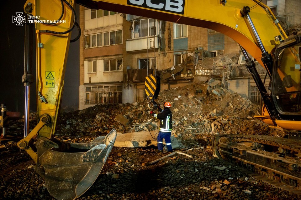 У Тернополі триває третя доба безперервних пошуково-рятувальних робіт на місці ворожого удару. Про це повідомили у пресслужбі ДСНС області.