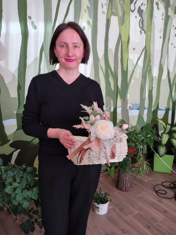 У бібліотеці-філії №5 для дорослих учасники декорували великодні кошики, використовуючи еко-матеріали — сухоцвіти, гілочки лаванди та мімози, стрічки й інші святкові елементи.