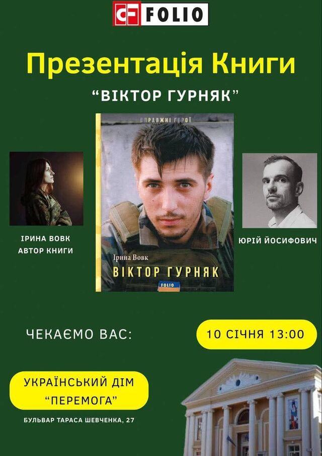 Презентація книги «Віктор Гурняк» із серії «Справжні Герої» відбудеться 10 січня, о 13:00 в Українському Домі «Перемога» в Тернополі. Про це повідомили на фейсбук-сторінці Ветеранський простір – Тернопільщина.