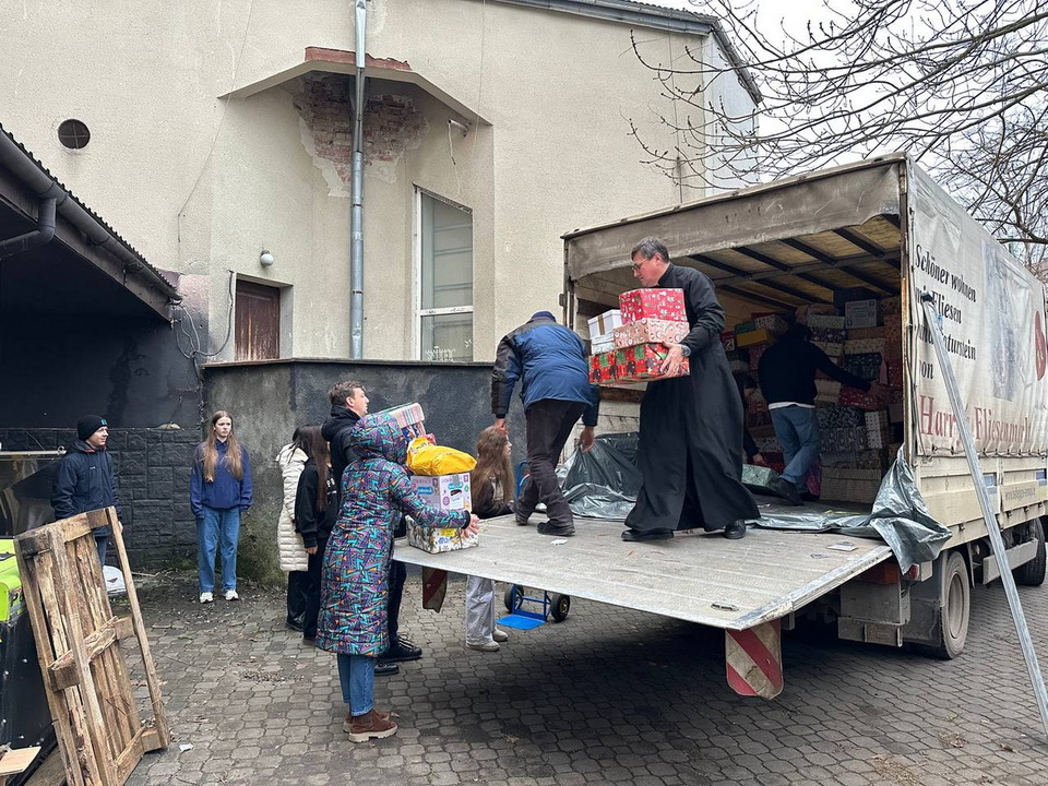 Під час візиту єпископи долучилися до розвантаження великої вантажівки, що прибула з Німеччини. У ній доправлено понад 1654 різдвяні пакунки та інші необхідні речі, зібрані школами, парафіями та благодійниками з кількох регіонів Баварії. Пакунки містять солодощі, іграшки, канцелярське приладдя, засоби гігієни, теплий одяг та інші необхідні речі.