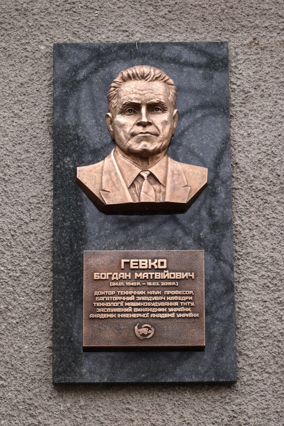 У Тернополі на фасаді технічного університету ім. Івана Пулюя відкрили пам’ятний барельєф професору Богдану Гевку - заслуженому винахіднику України. Про це повідомили на фейсбук-сторінці Тернопільського національного технічного університету імені Івана Пулюя
