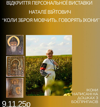 Персональну виставку ікон майстрині іконопису та волонтерки Наталії Війтович під назвою «Коли зброя мовчить, говорять ікони» відкриють у читальному залі Тернопільської міської бібліотеки №4 для дорослих «Етно-Центр» 9 листопада, о 14:00. Про це повідомили на сайті міської ради.