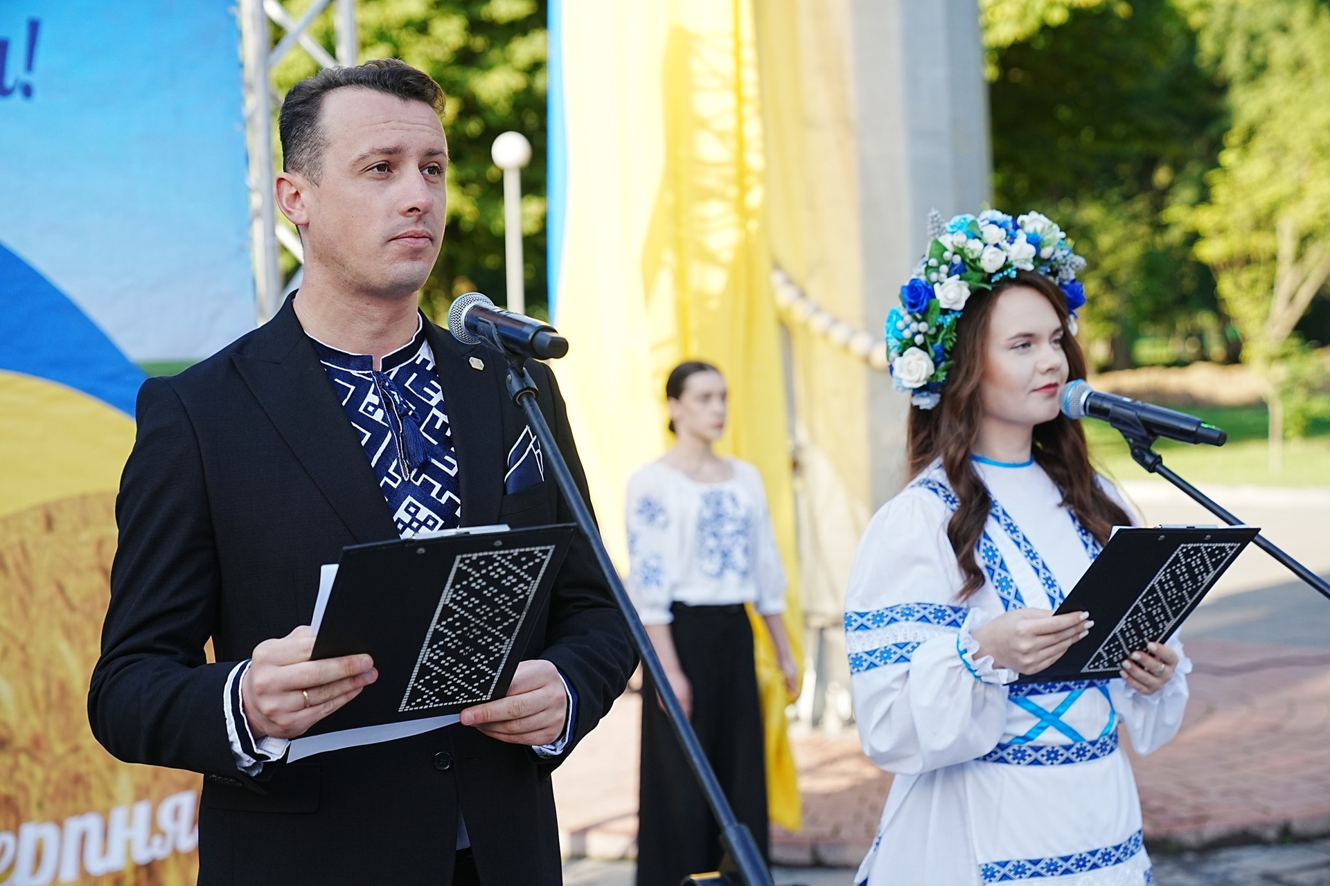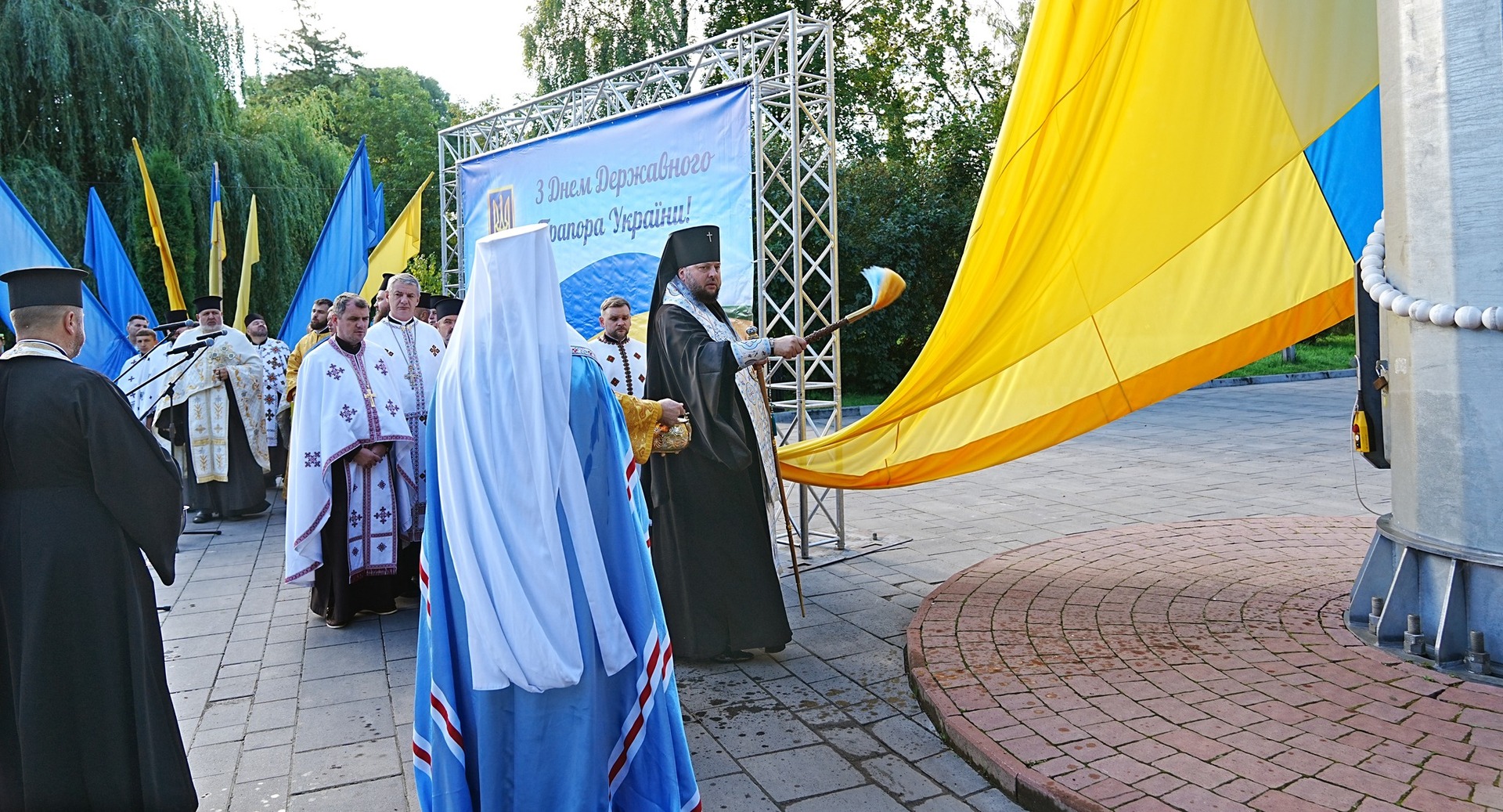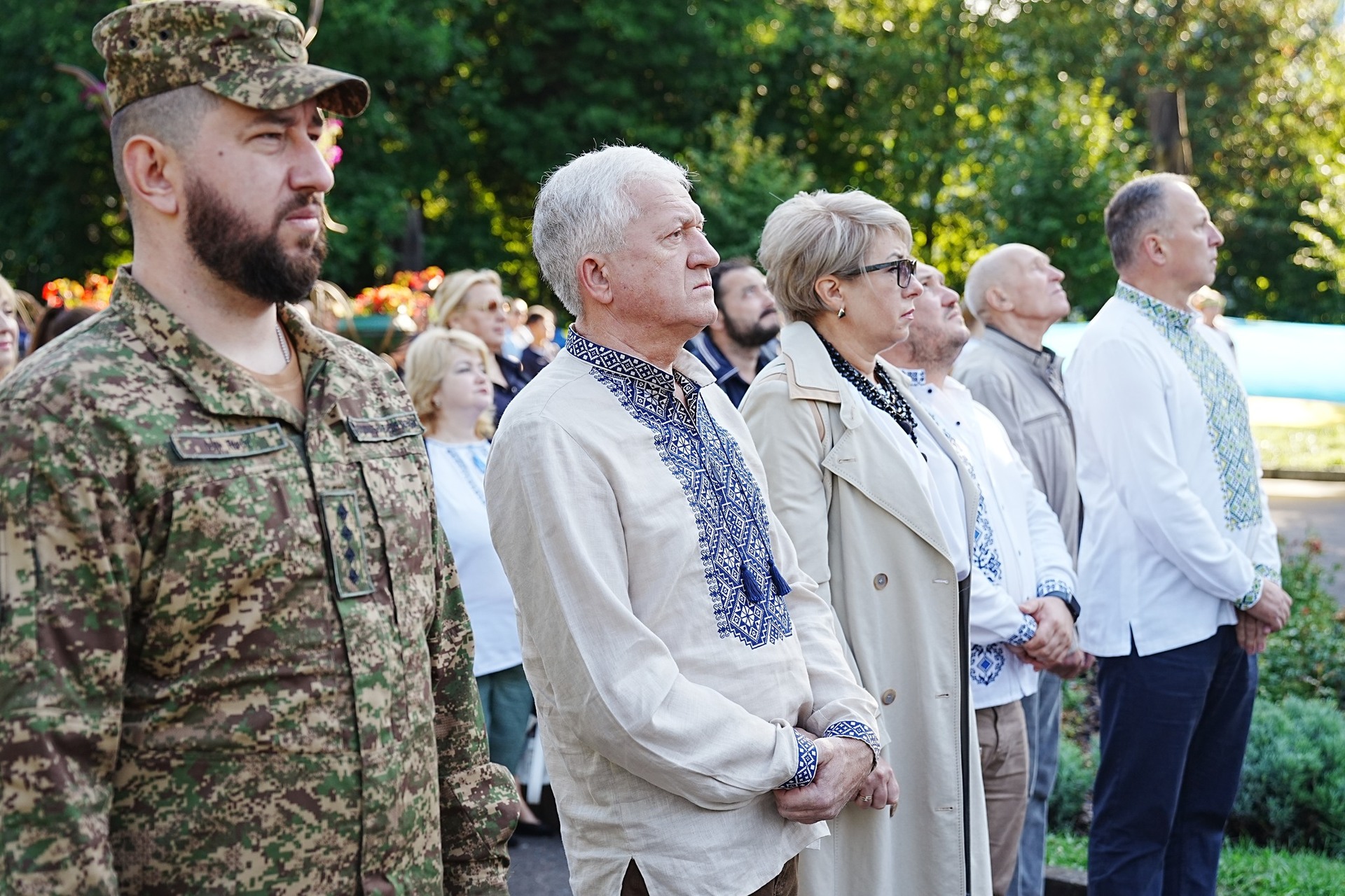 Під час церемонії підняття стяга звучав Державний Гімн у виконанні заслуженого артиста України Бориса Репки.