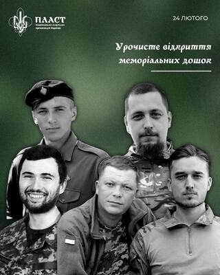 24 лютого о 18:00 на фасаді домівки Тернопільського Пласту відбудеться урочисте відкриття меморіальних дошок п’ятьом пластунам, які віддали своє життя в боротьбі за Україну: Гурняку Віктору, Дереху Віталію, Сенюку Богдану, Коновалу Сергію, Погорілому Миколі. Про це повідомили на фейсбук-сторінці «Тернопільський Пласт».