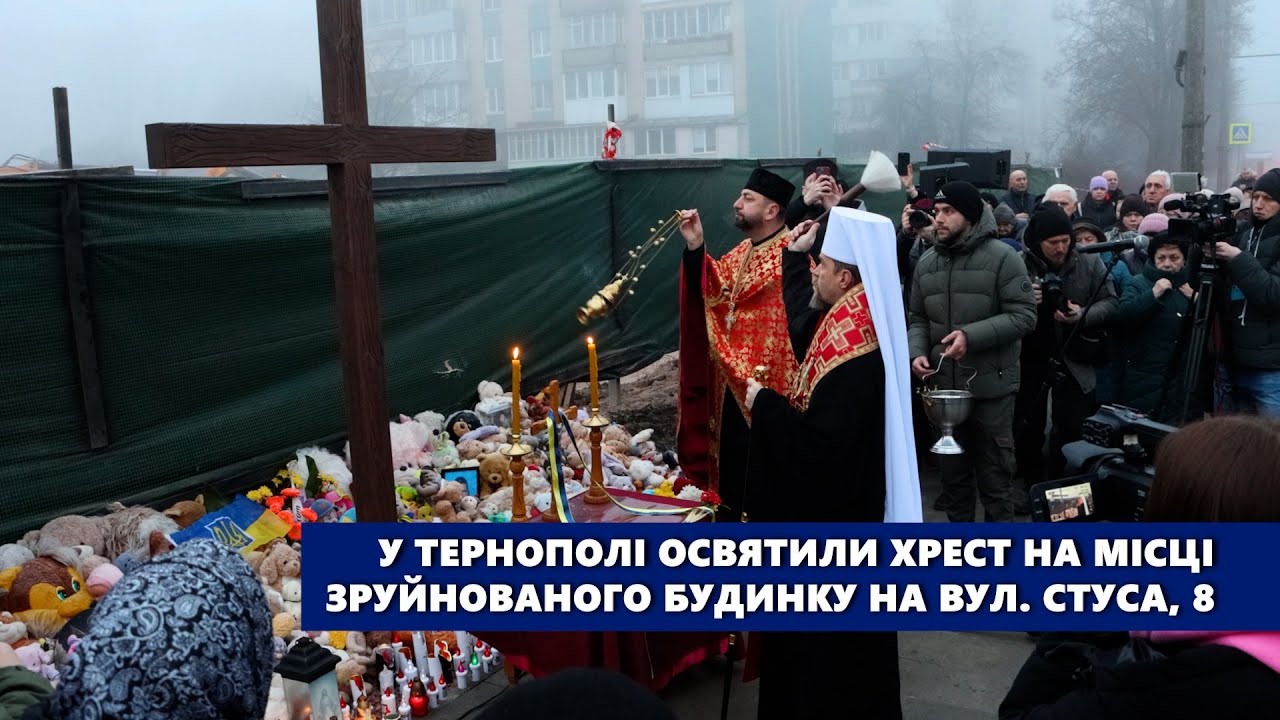 Меморіальний хрест встановили на місці зруйнованого ракетним ударом будинку на вул. Стуса, 8. Відтепер цей хрест, який освятили 19 грудня – через місяця після трагедії, є символом вічної пам’яті про загиблих від російського терору у Тернополі.