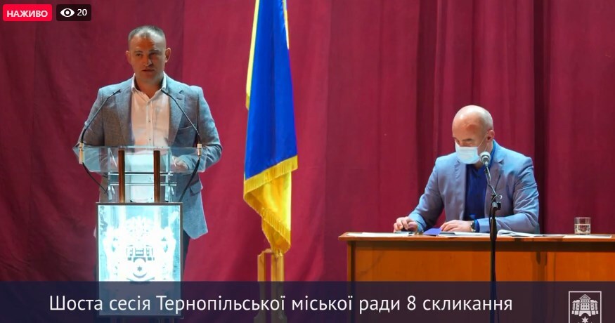 Фото із трансляції засідання на сторінці Тернопільської міської ради у соціальній мережі «Фейсбук»