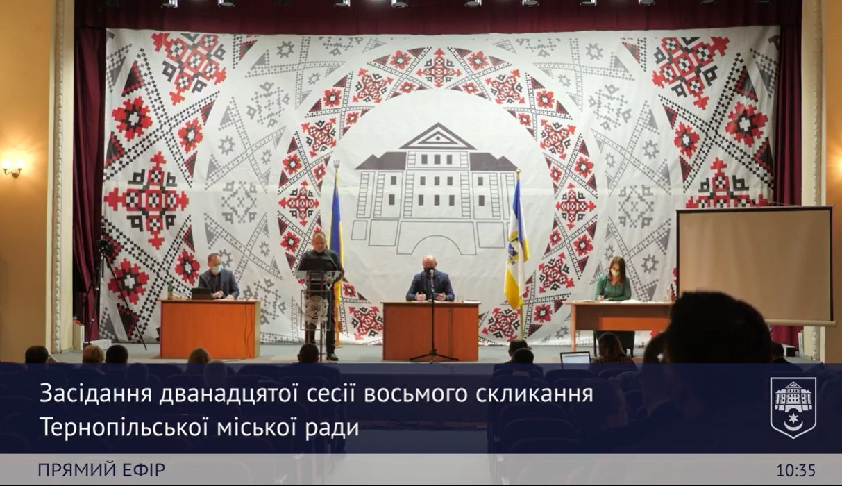 Фото з трансляції засідання на сторінці Тернопільської міської ради у соціальній мережі «Фейсбук»