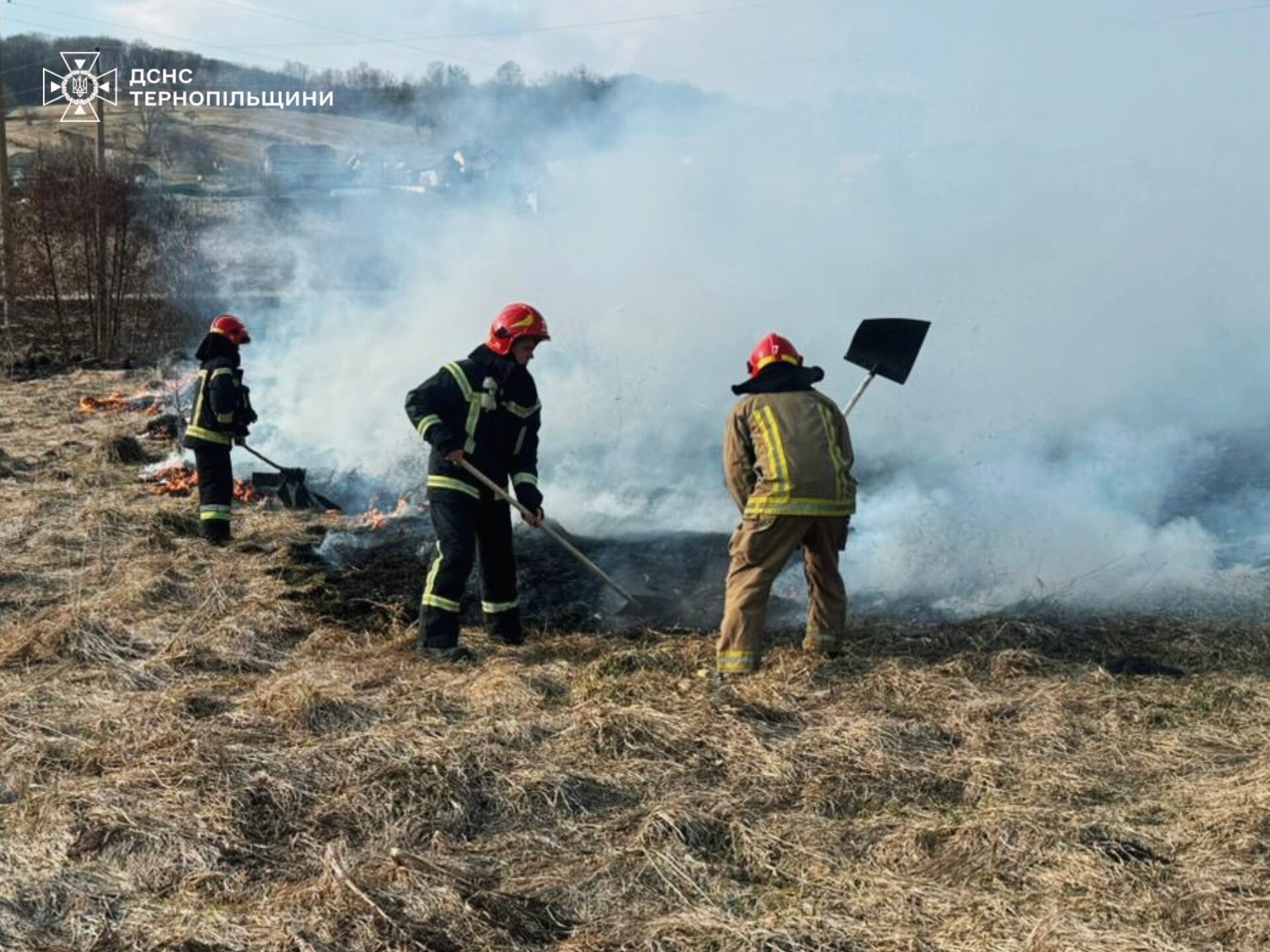 Окремою проблемою залишаються загоряння на відкритих територіях. За добу зафіксували п’ять випадків горіння сухої трави у Тернополі та в селах Куряни, Вигода, Боднарівка і Пробіжна. Вогонь знищив понад 2,3 гектара території.