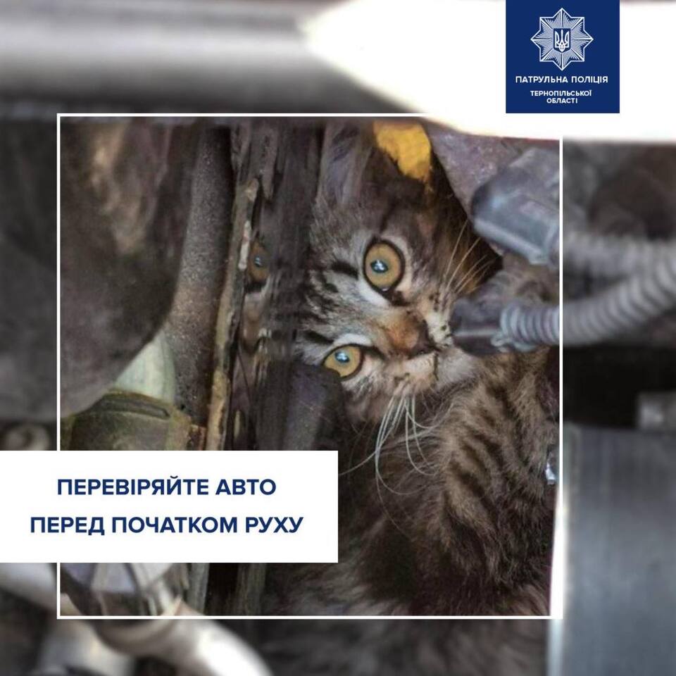 З настанням холодів вуличні коти та собаки все частіше шукають теплі місця біля автомобілів, що може становити для них небезпеку. Про це повідомили в Патрульній поліції Тернопільської області.