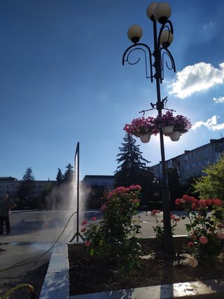 На площі Героїв Євромайдану у Чорткові працівники водоканалу встановили для чортків’ян й гостей міста «освіжаючу рамку», яку виготовили власноруч. Конструкція розпилюватиме на перехожих прохолодну воду. Така атракція – чудовий спосіб отримати хоча б трішки свіжості у спекотний літній день.