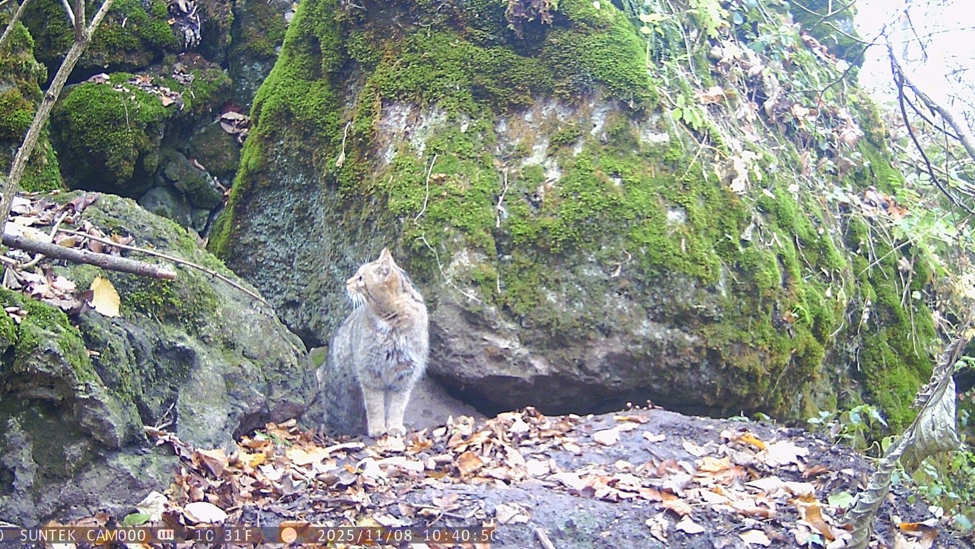 У фотопастку заповідника на Тернопільщині потрапив лісовий кіт — рідкісний вид ссавців, що занесений до Червоної книги України та перебуває під охороною держави. Про це повідомили на фейсбук-сторінці Природного заповідника «Медобори».