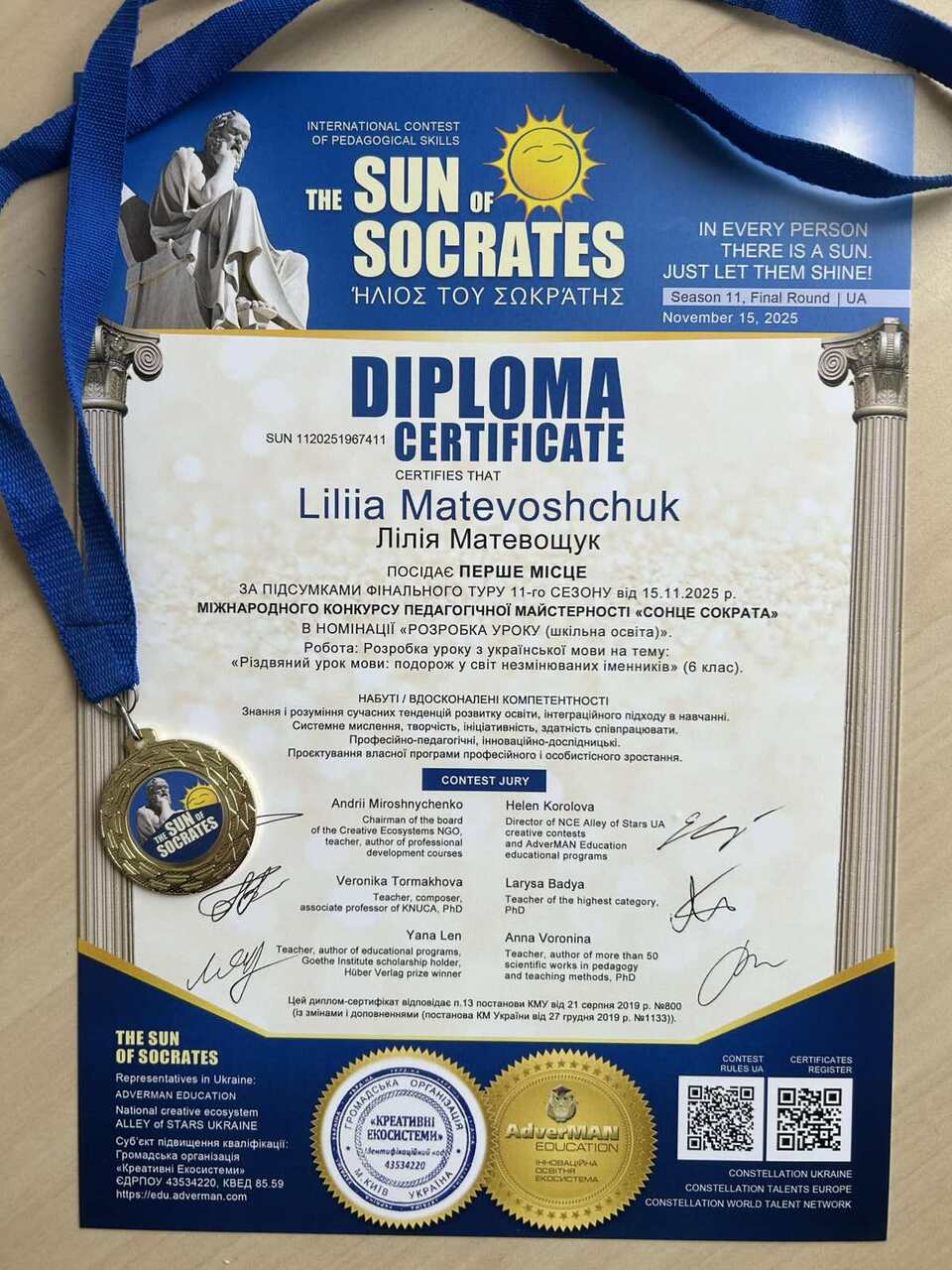 Педагогиня здобула диплом І ступеня у номінації «Розробка уроку (шкільна освіта)»