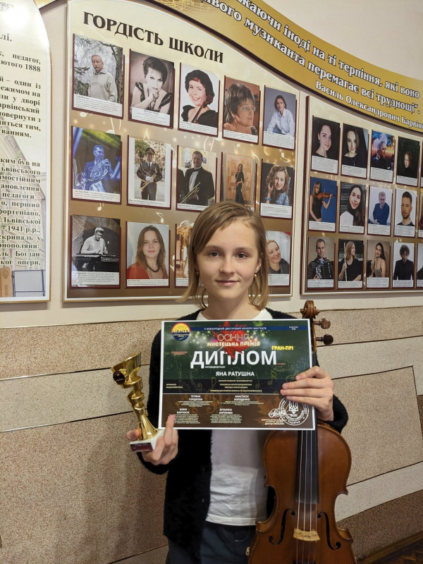 - Гран-прі ІІ Міжнародного конкурсу мистецтв «Осіння мистецька премія» (м. Київ): Яна Ратушна (скрипка) (викладачка - Наталя Плахцінська, концертмейстерка - Наталія Марущак).