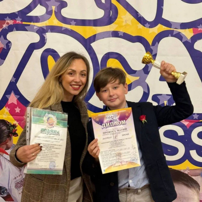 Зокрема, на Міжнародному фестивалі «Dance Vocal Class» у Хмельницькому Матвій Прожога здобув І премію та спеціальний приз від голови журі Галини Голубєвої за найкраще виконання (викладачка - Тетяна Жмуд).