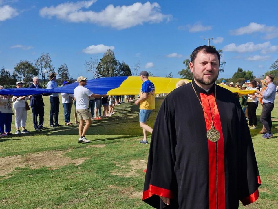 Найбільший у світі український прапор розгорнули у східноавстралійському місті Брисбен. Участь у заході взяв кардинал-пресвітер, єпарх Мельбурнської єпархії УГКЦ в Австралії, владика Микола Бичок, який родом з Тернополя. Про це він повідомив на своїй фейсбук-сторінці.