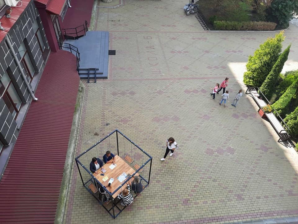 - Всередині куба є стіл, довкола нього 8 лавок-гойдалок. Конструкцію назвали «Мозковий штурм», там, діти спілкуються та вирішують проблеми, - розповіла заступниця директора з виховної роботи Валентина Кольба.