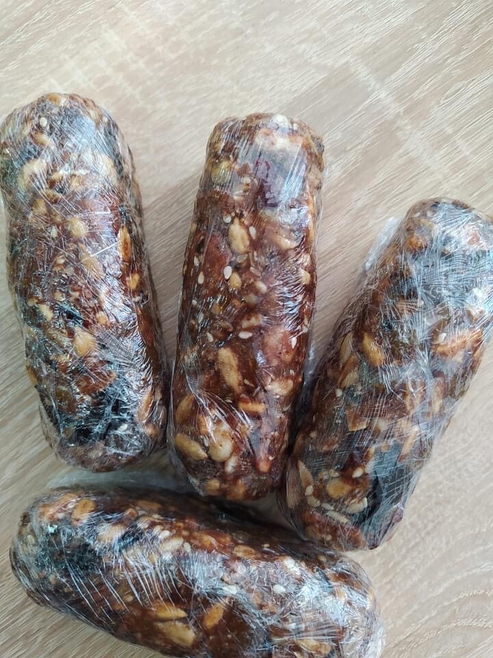 Ці батончики не тільки смачні, а й ситні та бюджетні. Довго не псуються, адже основою продукту є мед. До їх складу входять: родзинки, курага, чорнослив, насіння лущеного соняшника, кокосова стружка, сухе печиво («Марія», «Корівка»), журавлина, горіхи волоські, арахіс смажений, чорний шоколад, кунжут.
