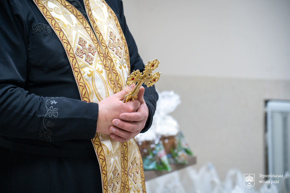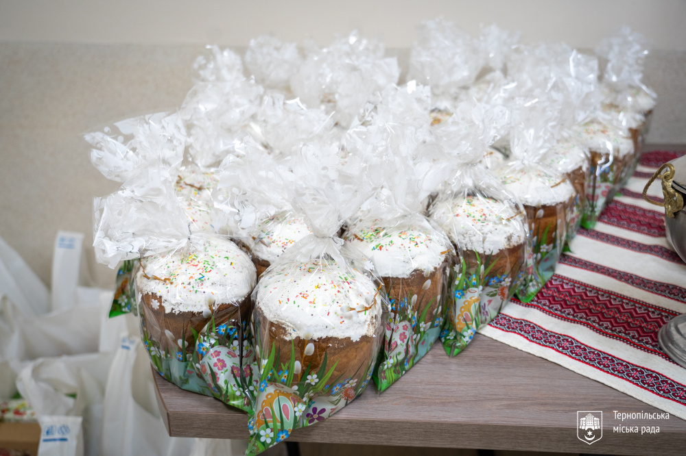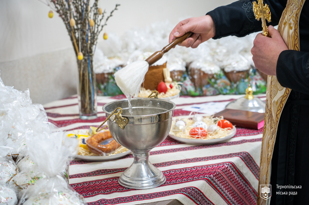 Чин освячення пасок і продуктів відбувся 26 березня у приміщенні управління соціальної політики Тернопільської міської ради. Упродовж двох тижнів великодні кошики доставлятимуть безпосередньо родинам.