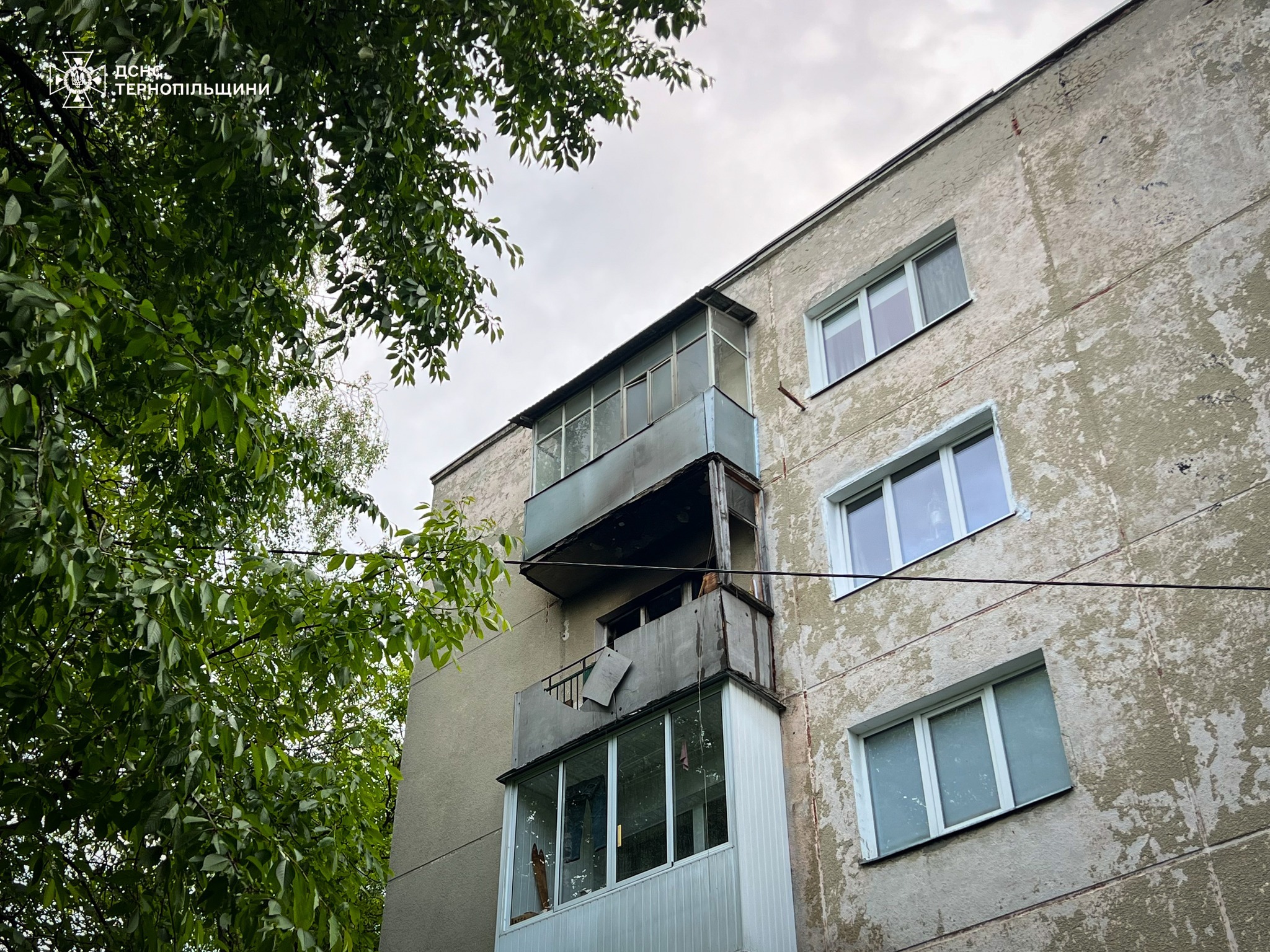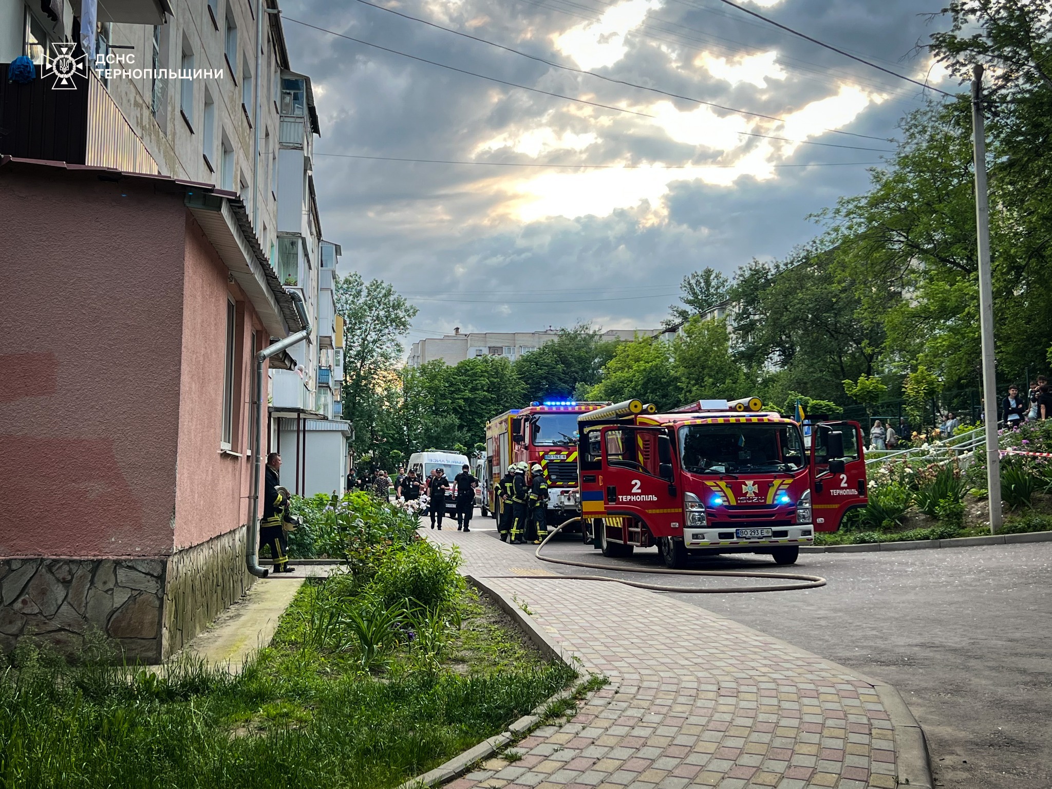 Увечері 9 червня в Тернополі на вулиці Кривоноса стався вибух у квартирі багатоповерхівки. Пожежа, що виникла після цього, охопила приміщення на четвертому поверсі. Про це повідомили у пресслужбі ДСНС Тернопільщини.