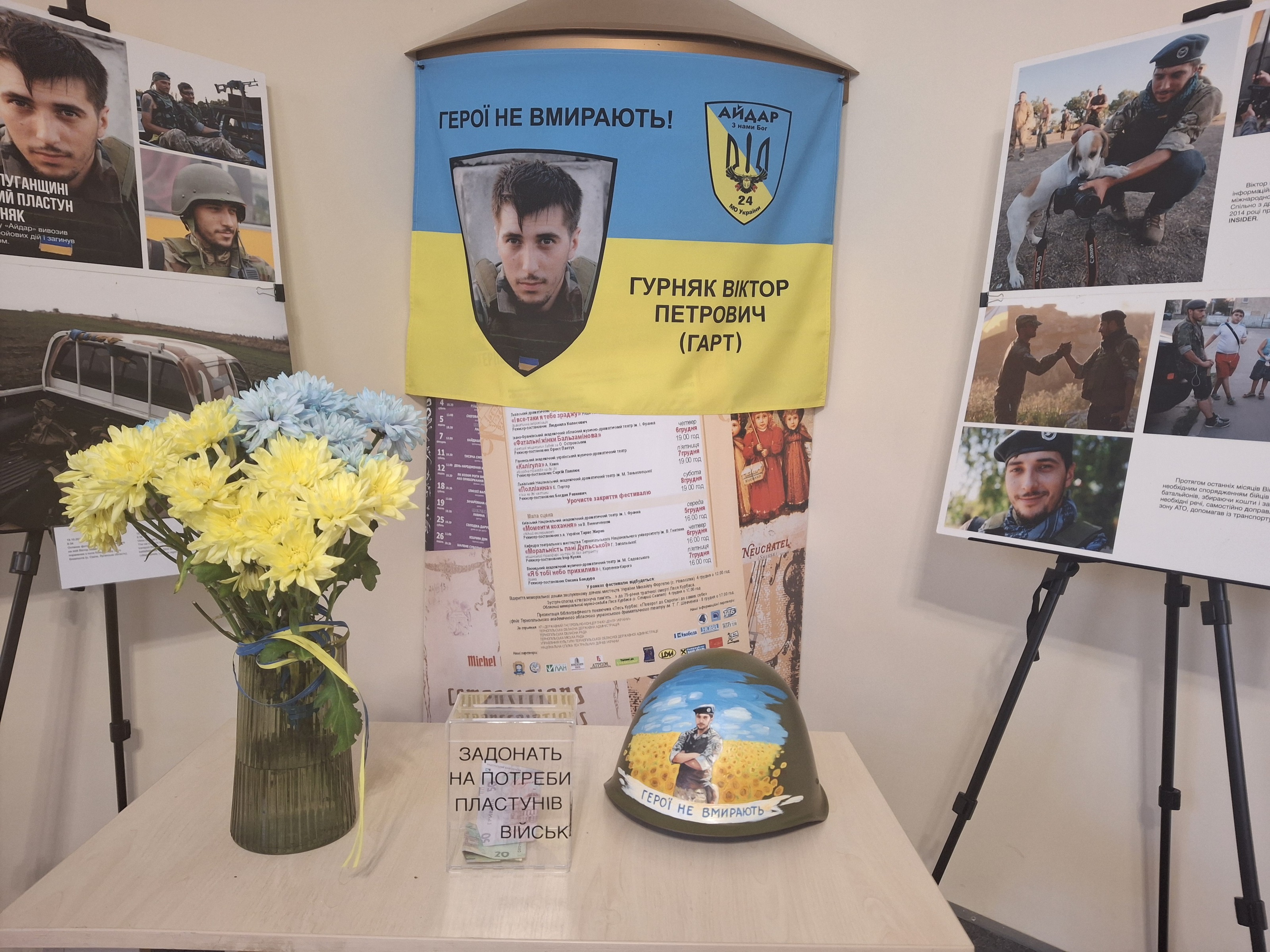 Фотовиставка журналіста, фотомитця, пластуна та бійця батальйону “Айдар” Віктора Гурняка триває у бібліотеці-філії №2 для дітей у Тернополі до 22 вересня. Воїн загинув у 2014 році на Луганщині, рятуючи поранених побратимів.