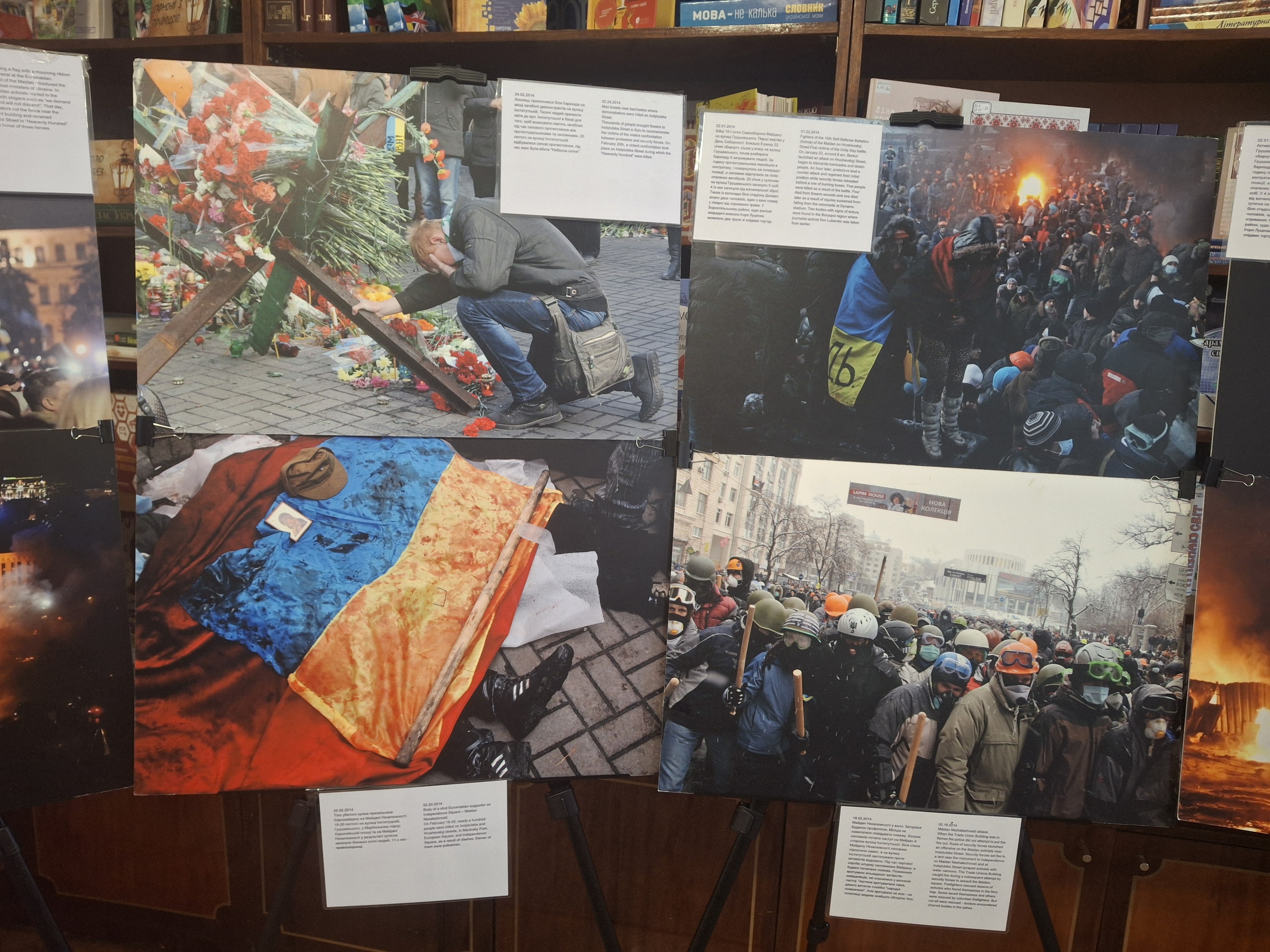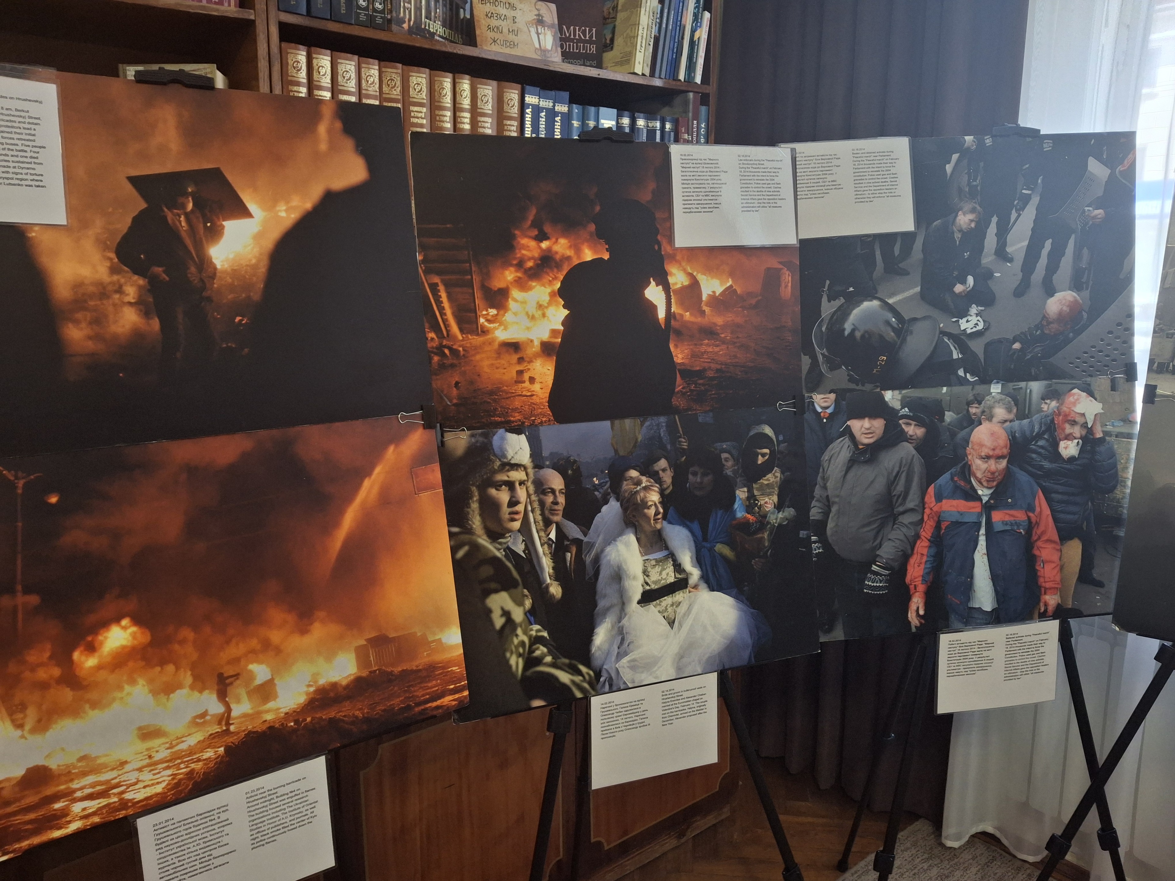 Виставка налічує понад 30 фотографій, що охоплюють період від Революції Гідності до перших етапів війни на сході