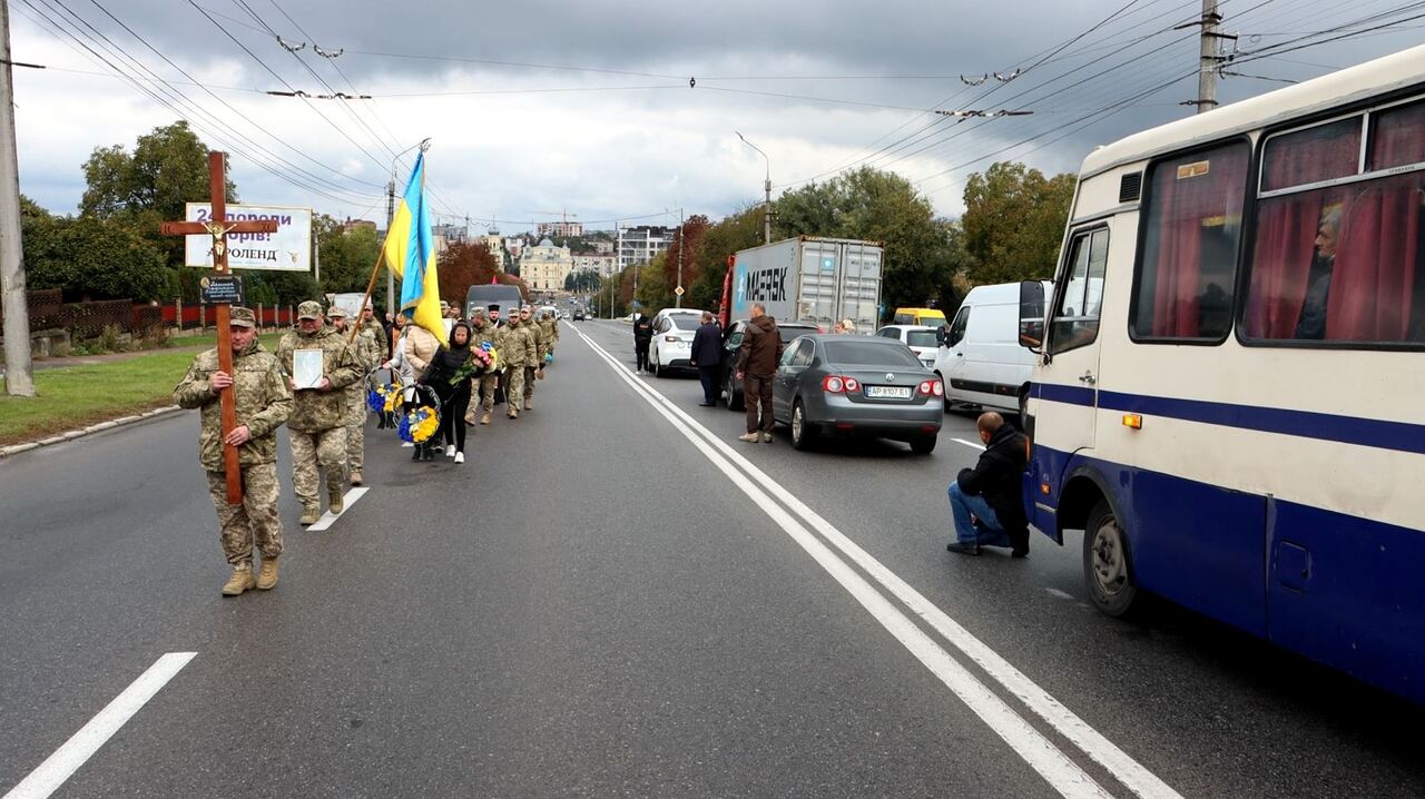 Воїна Валентина Мельника поховали у Тернополі 2 жовтня. Із полеглим прийшли попрощатися друзі, рідні та побратими. Життя 49-річного захисника обірвалося 10 лютого 2025 року під час виконання бойового завдання на Донеччині. 7 місяців його вважали зниклим безвісти.