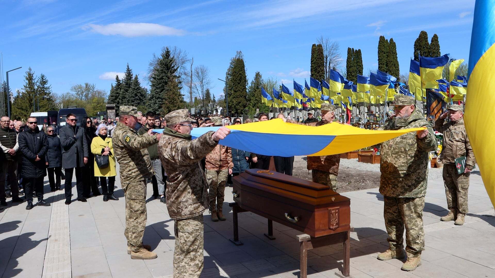 Полеглого командира Віталія Поворозника поховали у Тернополі 28 квітня. Попрощатися з воїном прийшли десятки людей – рідні, близькі, знайомі.