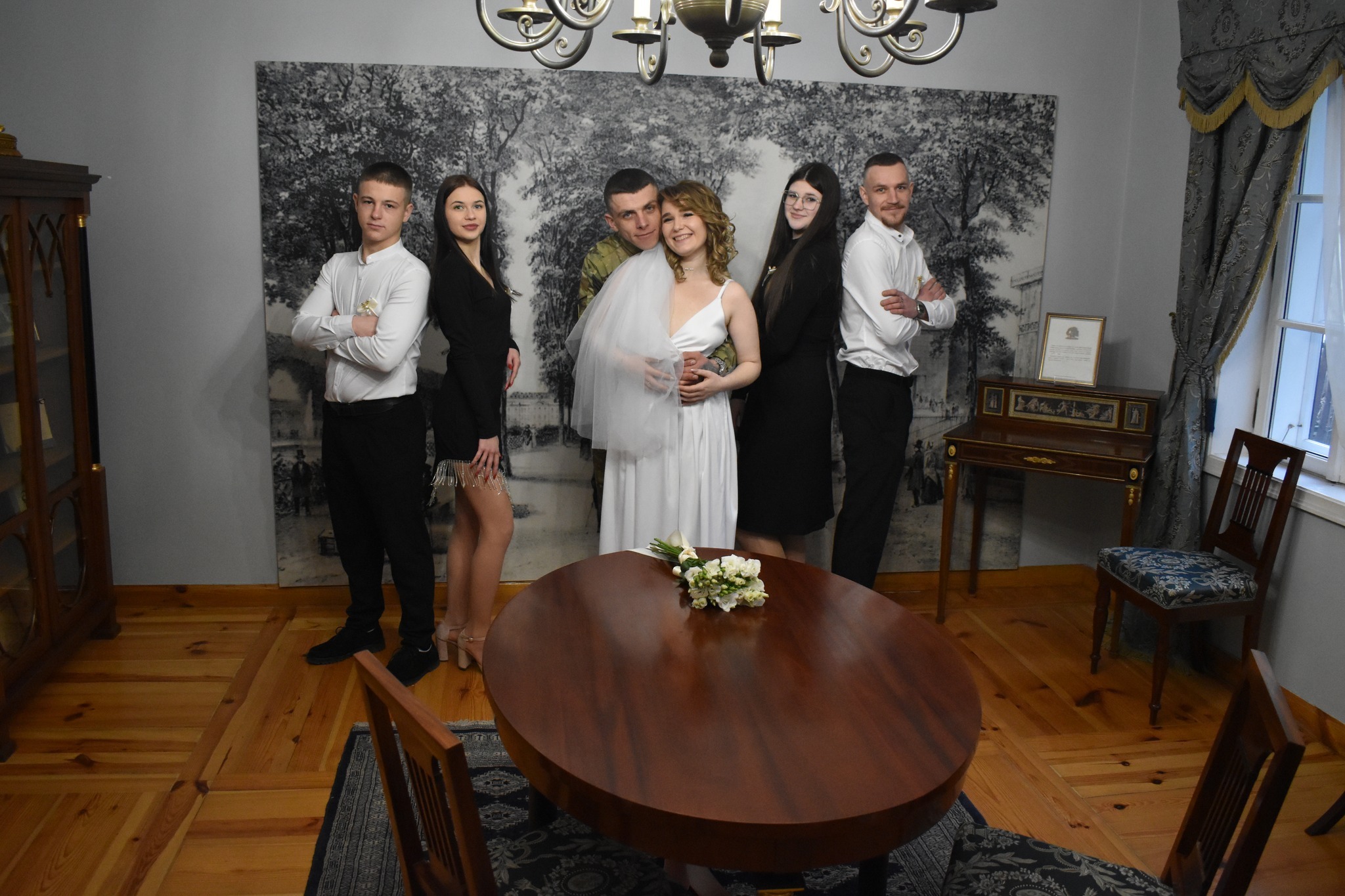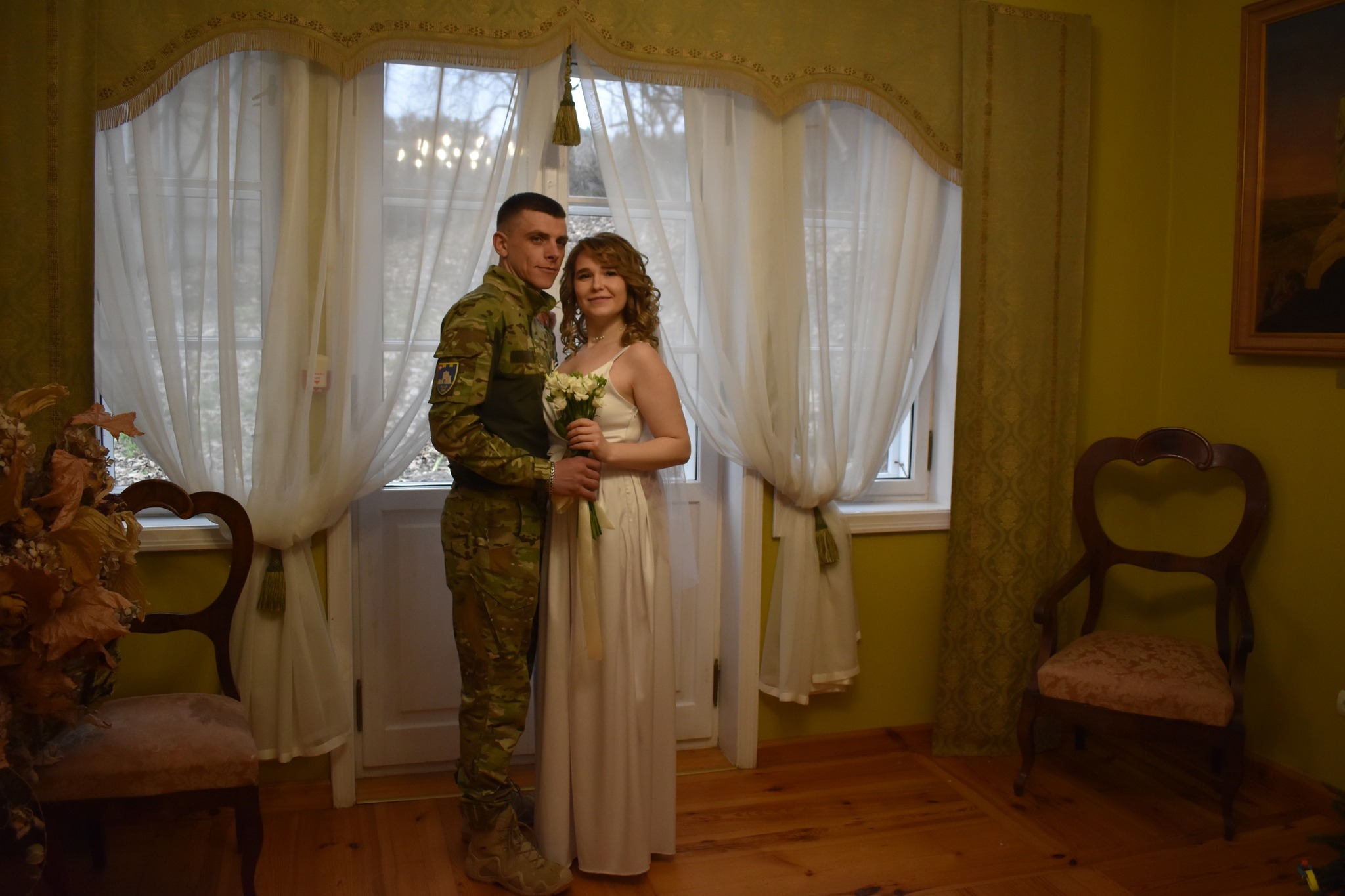 Боєць 105-ї бригади тероборони з Тернопільщини Макар одружився з коханою Ольгою під час своєї відпустки. У день весілля подружжя зробило романтичну весільну фотосесію в обласному літературно-меморіальному музеї Юліуша Словацького в Кременці. Про це розповіли на фейсбук-сторінці музею.