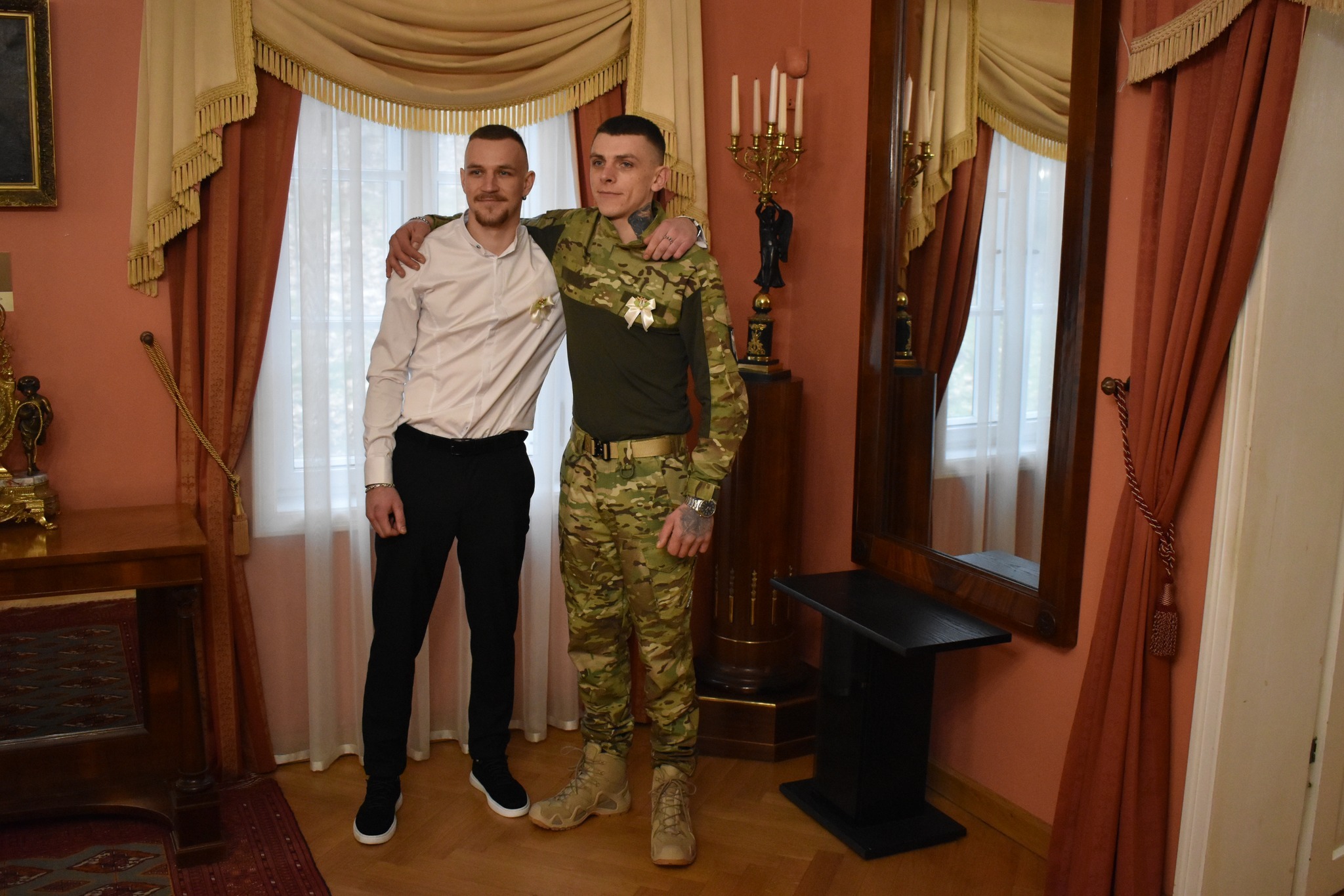 Щасливий і доволі стриманий у прояві своєї радості, він обнімав свою кохану Олю в колі своїх найближчих друзів: дружбів і дружок. Оля, студентка Рівненського державного університету, факультету музеєзнавства і культурознавства, випромінювала надзвичайну лагідність, тепло і захоплення своїм героєм, - йдеться у повідомленні.