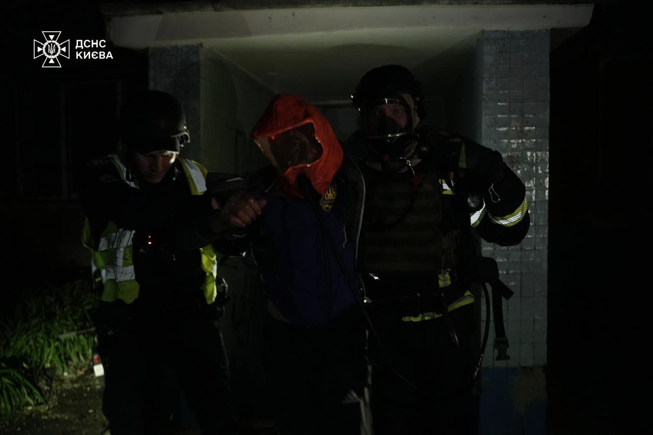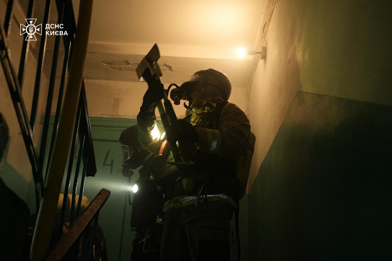 Солом’янський район. Пожежа виникла у квартирах на рівні 4 та 5 поверхів у житловій п’ятиповерхівці. Силами 30 чоловік особового складу та 8 одиниць пожежно-рятувальної і спеціальної техніки загоряння ліквідовано. За допомогою рятувального капюшоном врятовано чоловіка, якого з попереднім діагнозом отруєння продуктами горіння передано медикам.