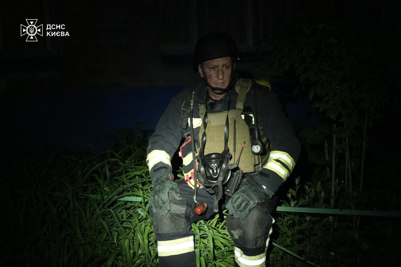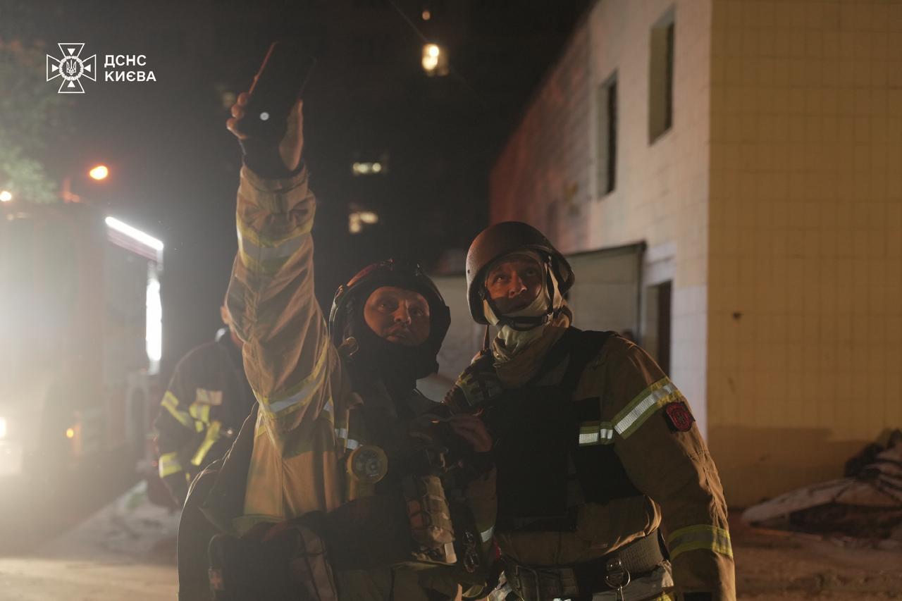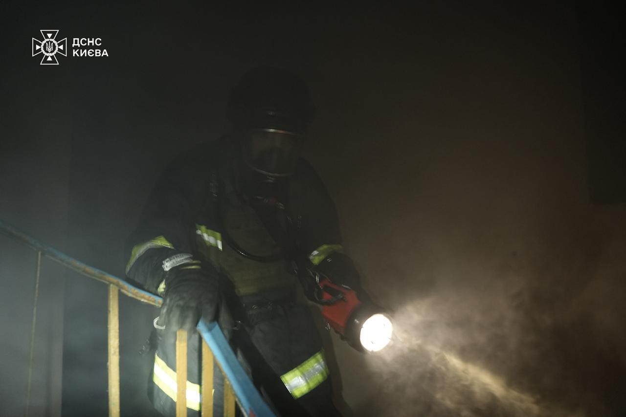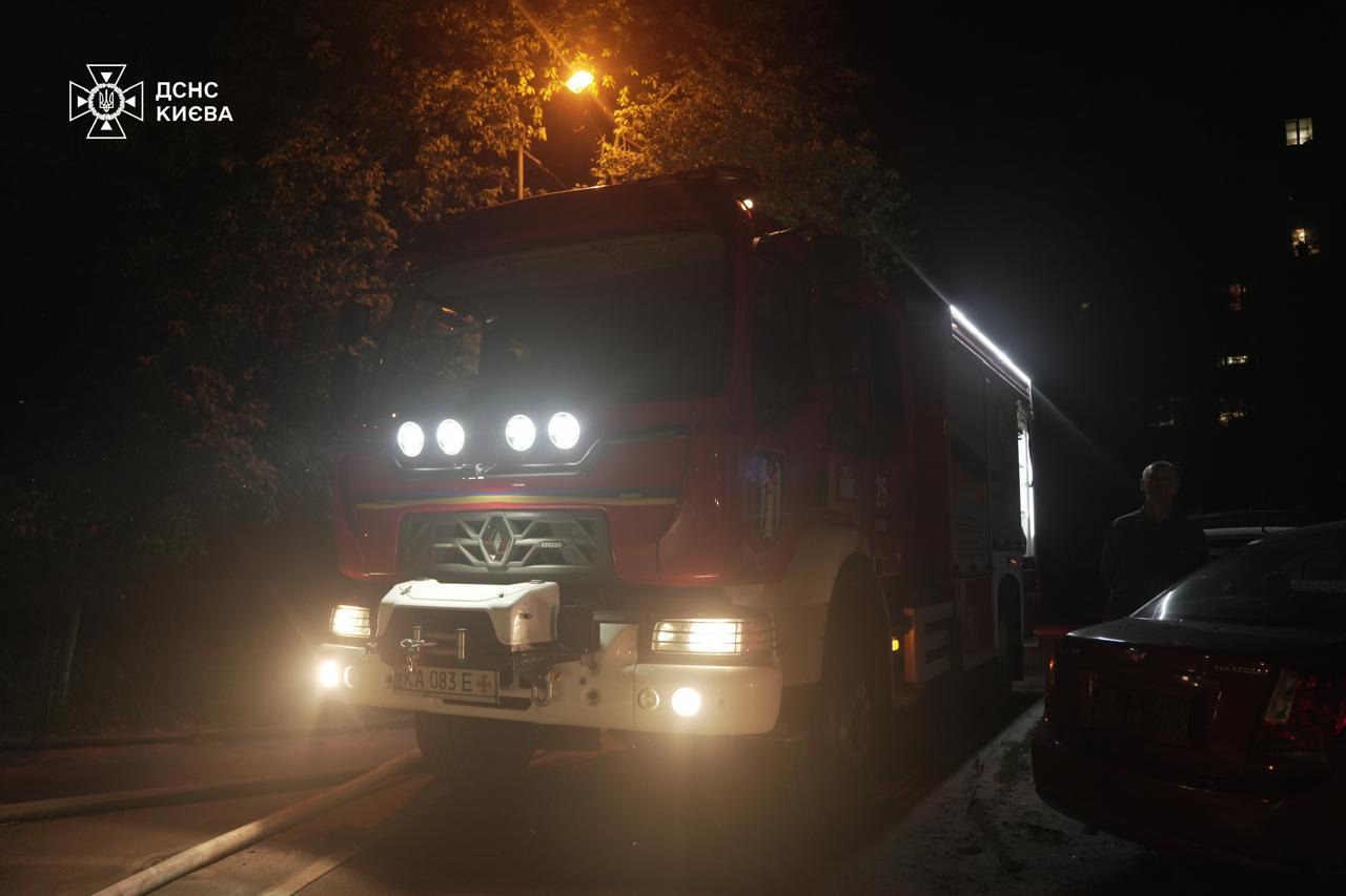 Святошинський район. В одноповерховій нежитловій будівлі зі зберігання лакофарбових матеріалів через російську атаку сталася пожежа. Роботи тривають.