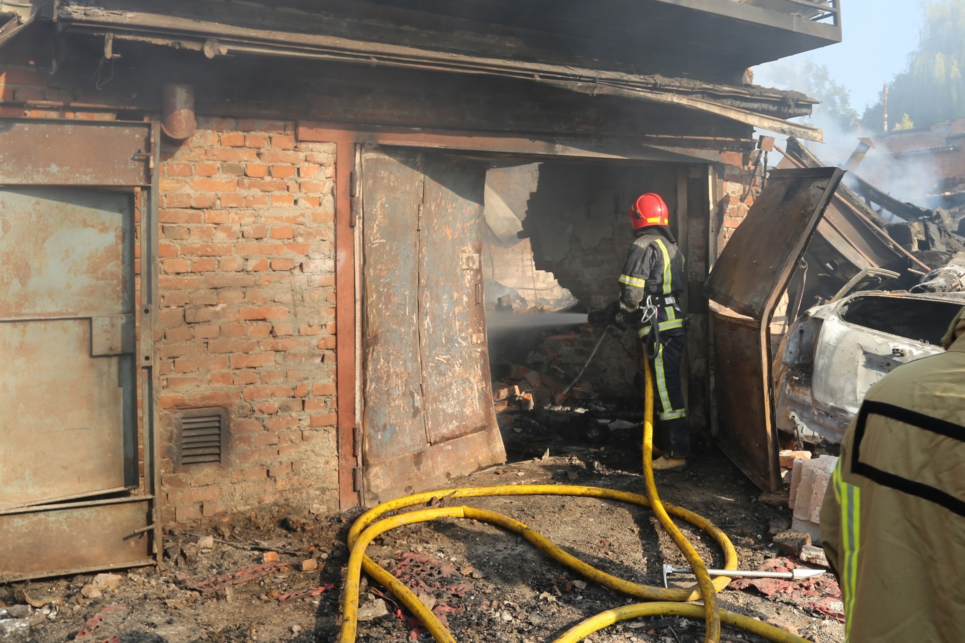 Горіли два гаражі та господарська споруда, ще одна господарська споруда пошкоджена уламками. Повністю вигорів приватний вантажний автомобіль, - зазначив він.