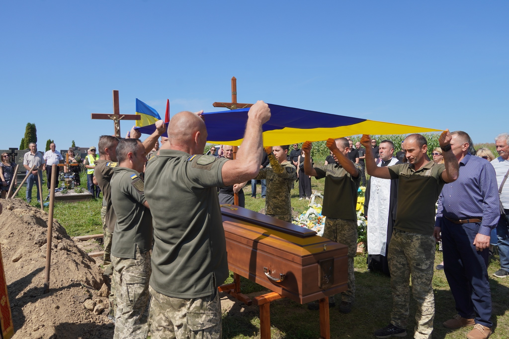 Це була хвилина, коли слова тонули у сльозах, а біль виривався із сердець криком душі. Дружина не могла стримати розпачу, її плач зливався з плачем рідних, друзів та побратимів. Усі, хто прийшов провести Героя в останню путь, схиляли голови у глибокій скорботі. Сльози текли по обличчях чоловіків і жінок, дорослих і літніх — бо втрату такого сина громади відчув кожен, – йдеться в повідомленні.