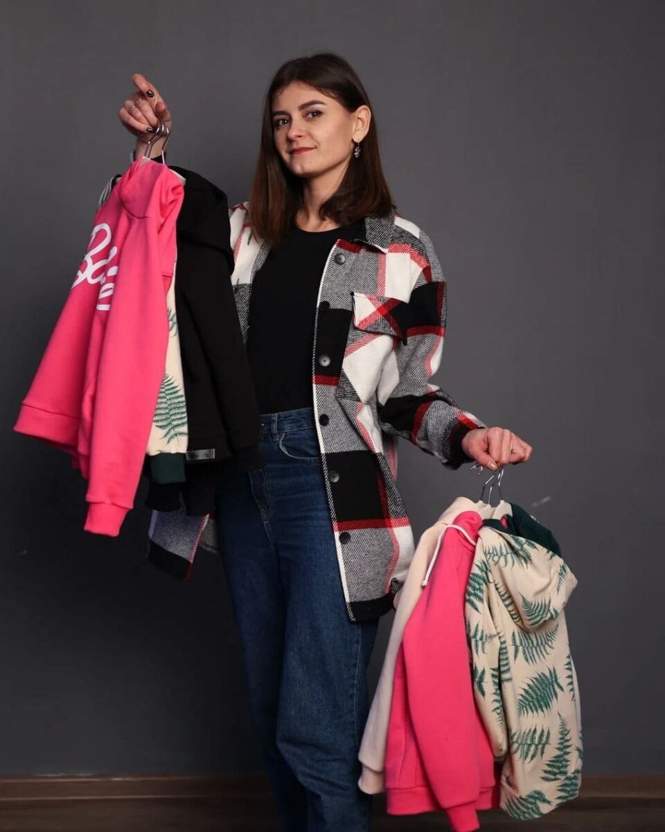 Нас було четверо – три швеї і я. Якраз перед 24 лютим 2022-го ми переїхали в новий офіс. Він був більший і ближчий до нашого дому. Я вже закупляла матеріали на весну, і тут почалася повномасштабна війна. Мене розбудив дзвінок друга сім'ї, який першим повідомив цю страшну звістку. Це було о 6.04 – цей час, який поділив життя на до і після, я напевно, запам'ятала на все життя, – пригадує жінка.