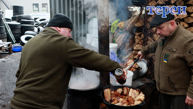 Домашнє м'ясо та сало для приготування воїнам благодійники купують за рахунок донатів небайдужих. Спеції та соуси дають безкоштовно продавці з тернопільського ринку. М'ясні страви для воїнів готують і передають практично щодня.